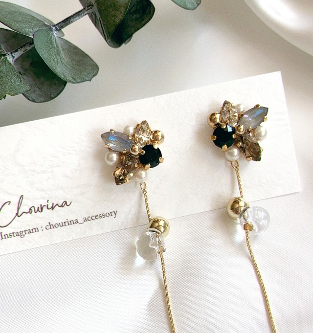 今期秋冬トレンドカラー、グレーを主役にしたイヤリング/ピアスです。 使用したクリスタルは4つのカラー。 ニュアンスのあるくすみグレー、シャープなシルバーグレー、透明感のあるクリア、締め色のブラック。 差し色にゴールドのニュアンスを加えて、大人っぽい印象に仕上げました。 チェーンにはコロンと丸みのあるビーズを飾り、遊び心と抜け感をプラス。 トレンドでもありつつ、グレーはベーシックなカラーなので合わせやすさは抜群です☺︎ モノトーンコーデ、パンツスタイル、キレイめコーデなどいろんなスタイリングにオススメです! 全長*7センチ 素材*クリスタル/パールビーズ/合金 秋/べっ甲/結婚式/お呼ばれ/天然石/14kgf/マーブル/淡水パール/パール/ゴールド/プレゼント/誕生日プレゼント/誕生日石/まる/花/チェコビーズ/アースカラー/モノトーン/差し色/ブラウン/パール/お呼ばれ/グレー サージカルステンレスとは? ステンレス素材の一種です。 もともとは医療用の道具に使われていましたが、現在では腕時計や指輪などにも利用されるようになりました。 サージカルステンレスはサビにくく丈夫で、チタン同様、金属アレルギーの人でも比較的安心な素材です。
