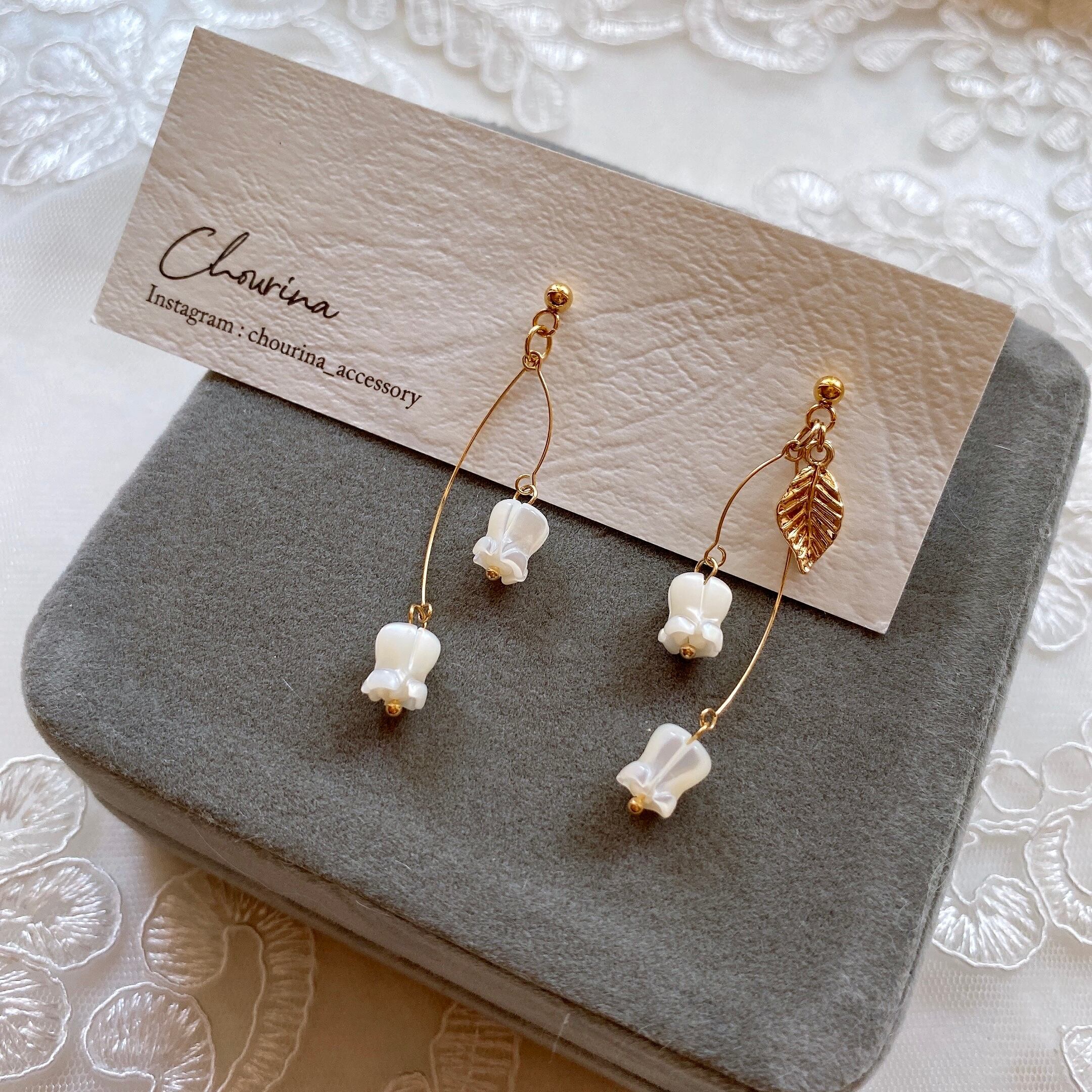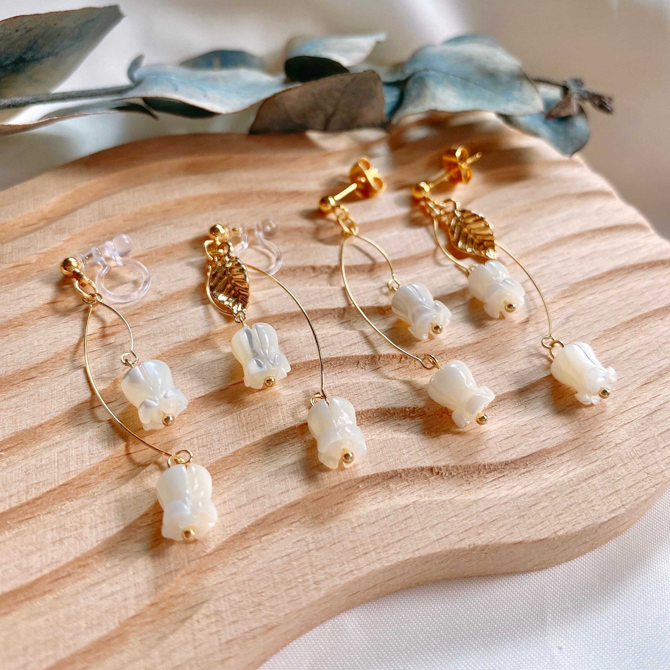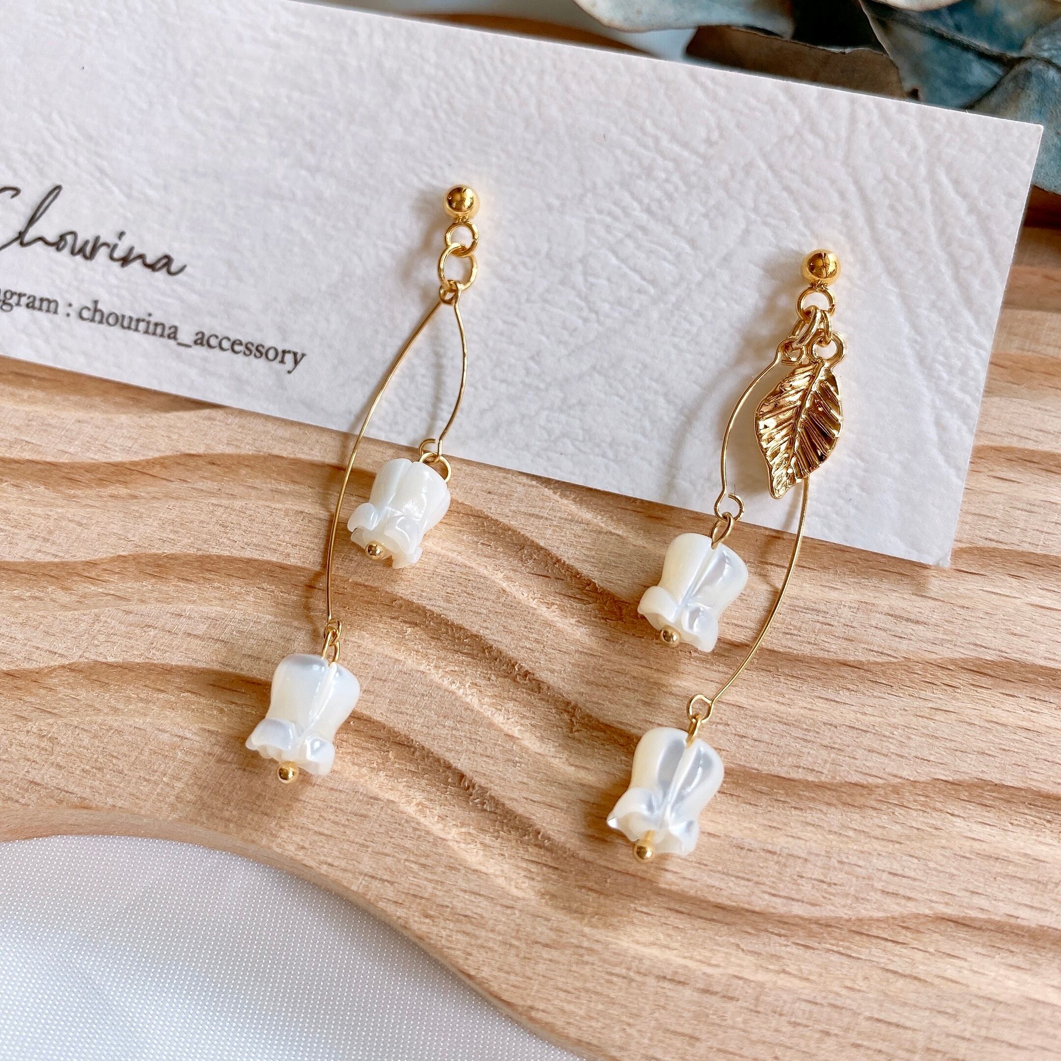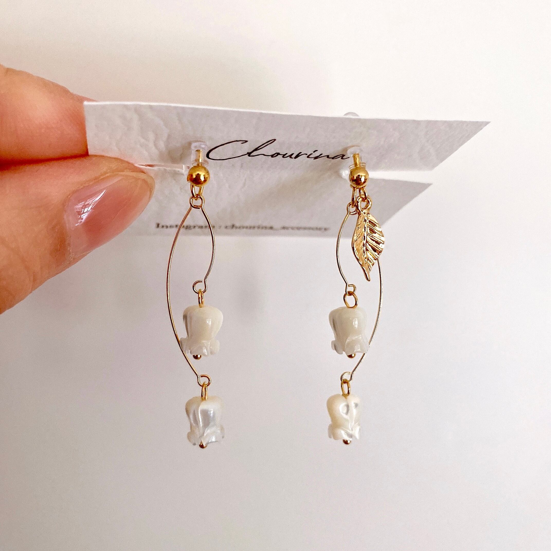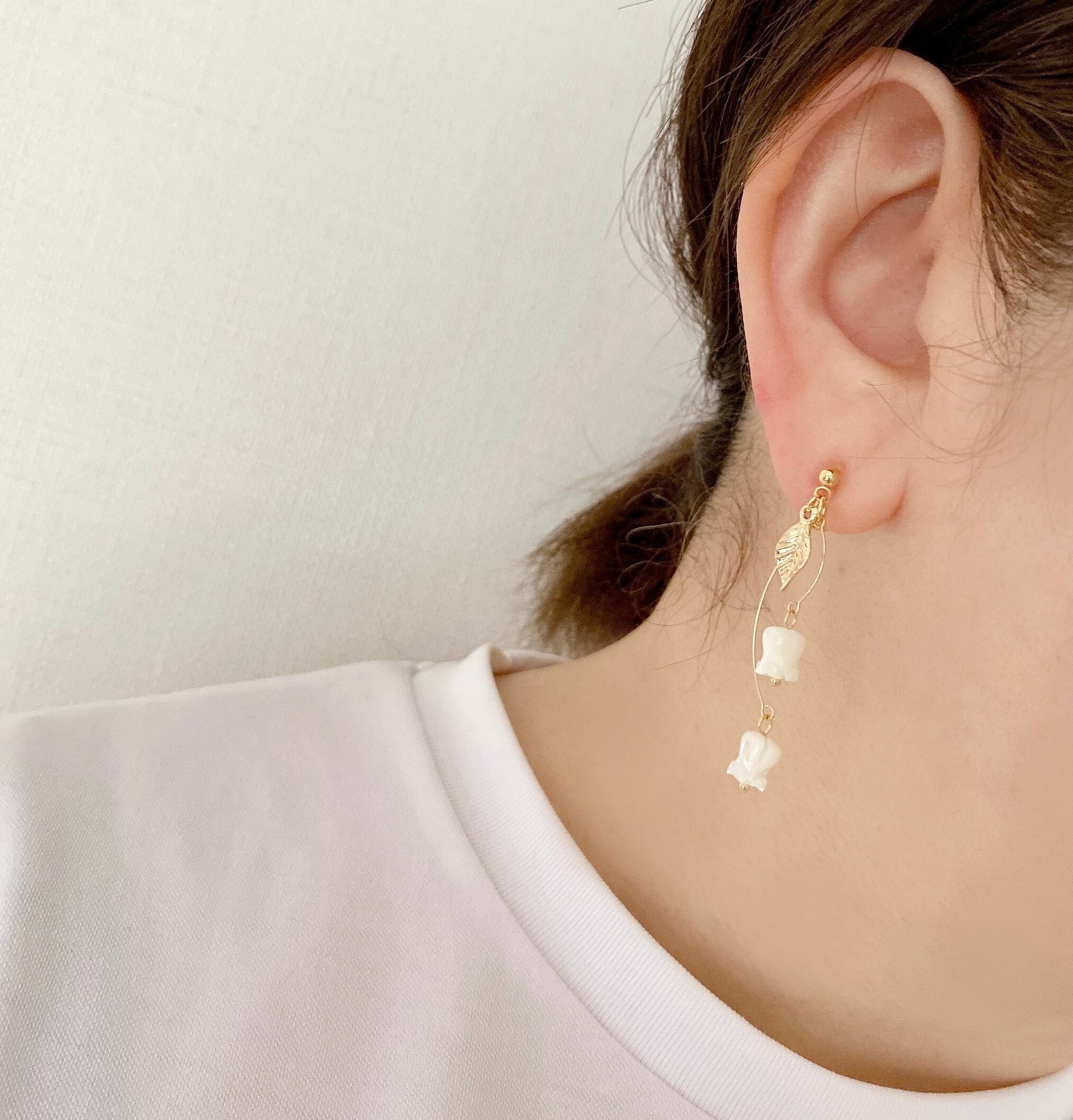 お散歩に行きたくなるようなスズランの耳飾りです。