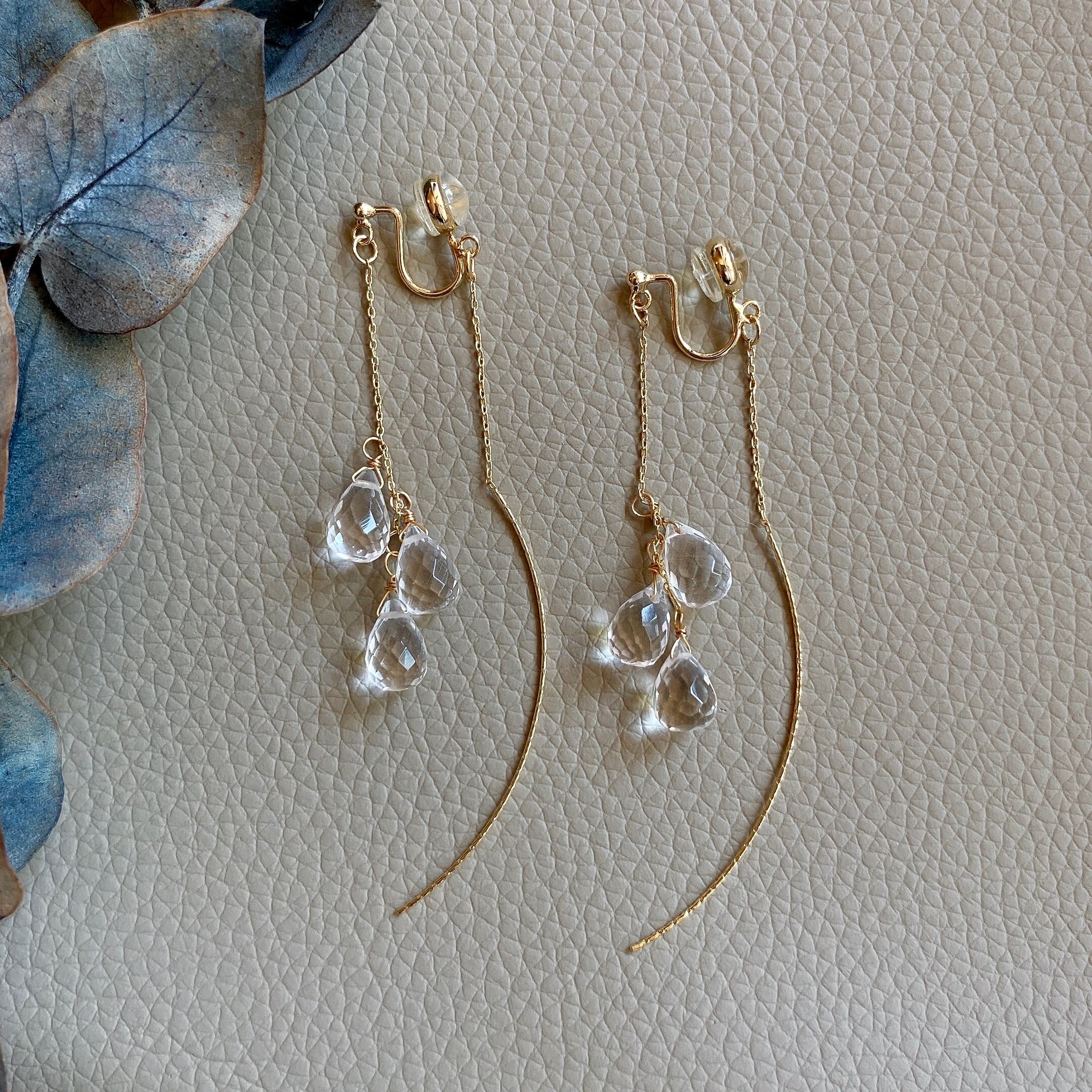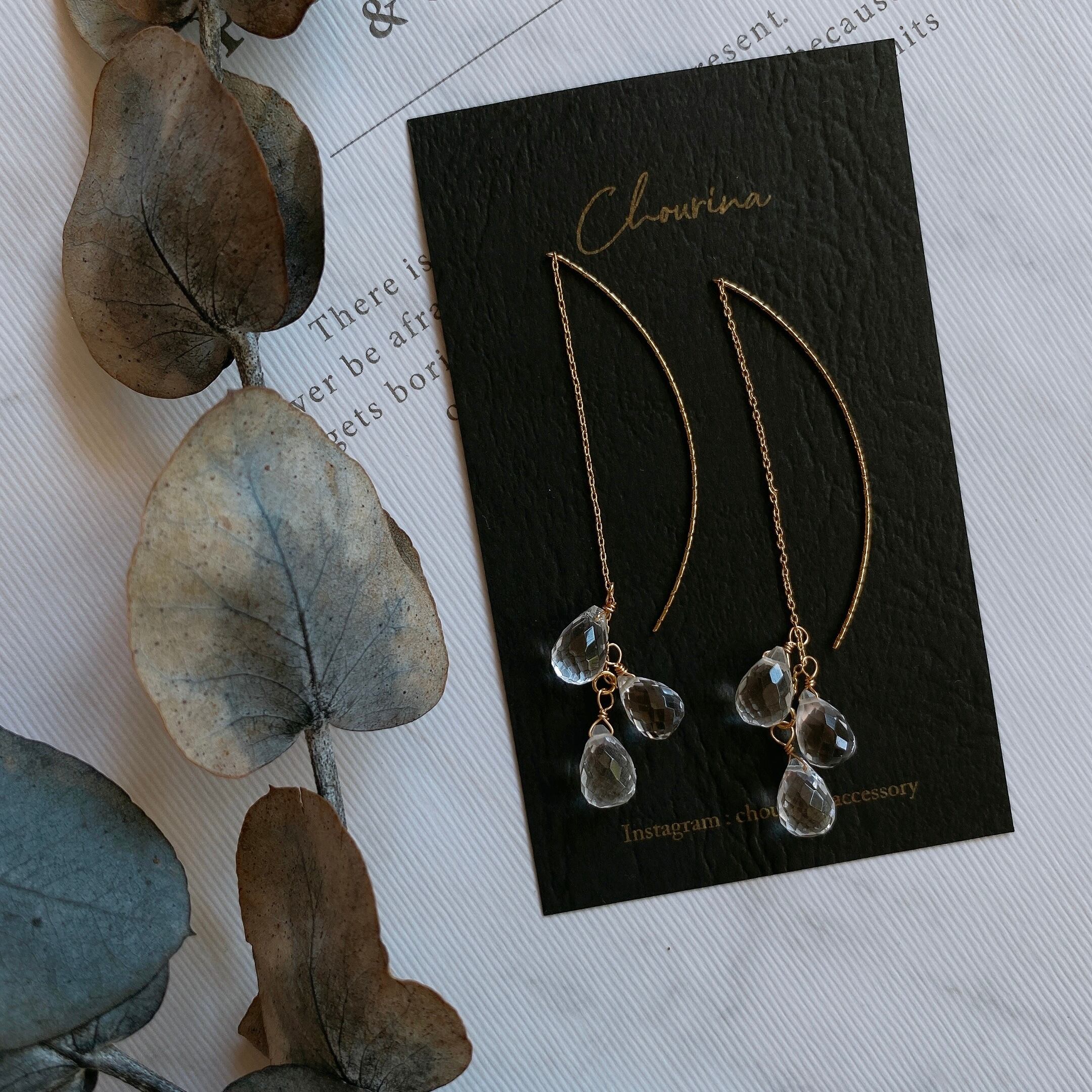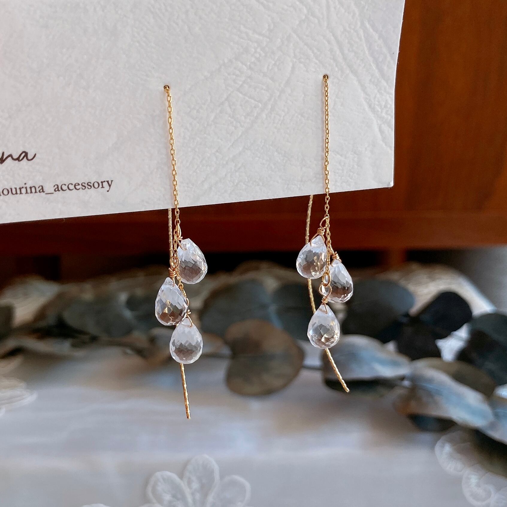 ブラジル産天然クリスタルを使用した煌めきあふれる耳飾りです。