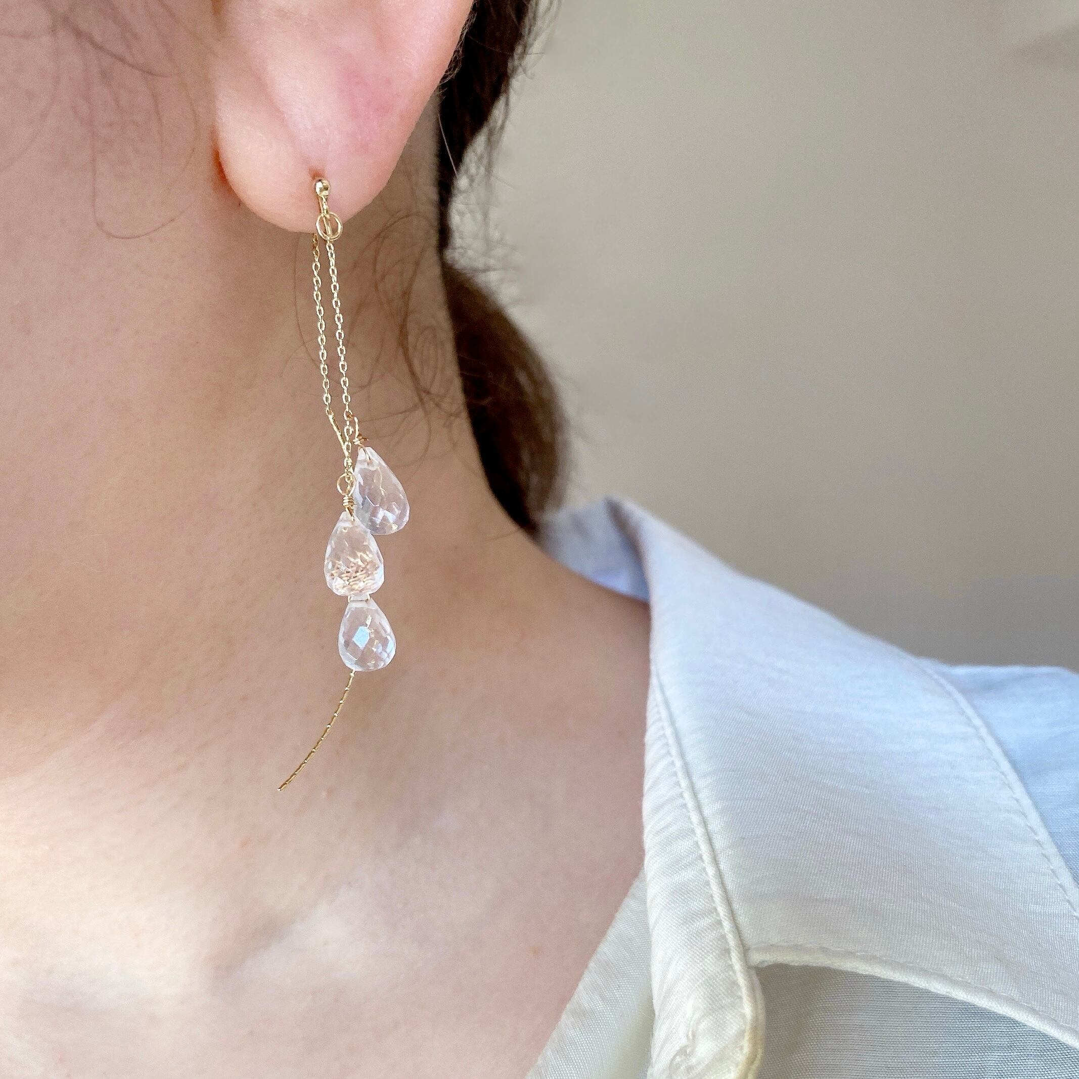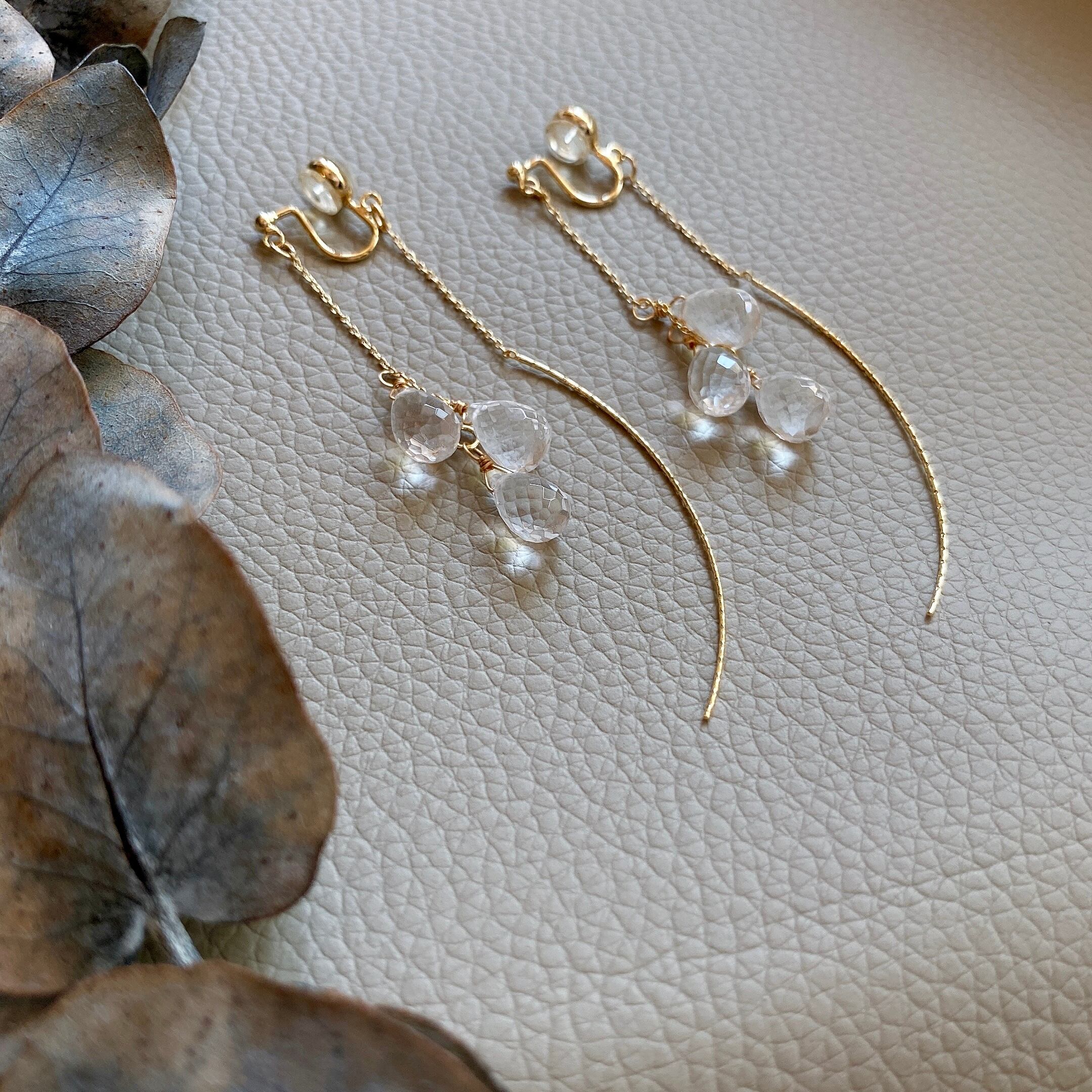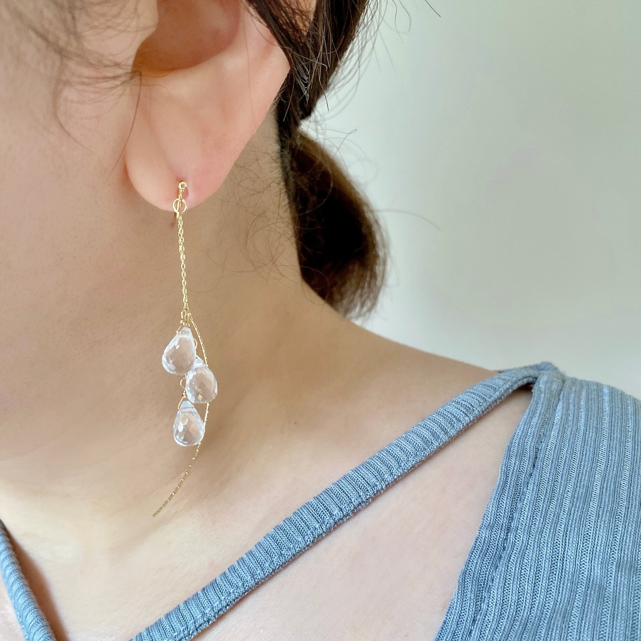 ブラジル産天然クリスタルを使用した煌めきあふれる耳飾りです。