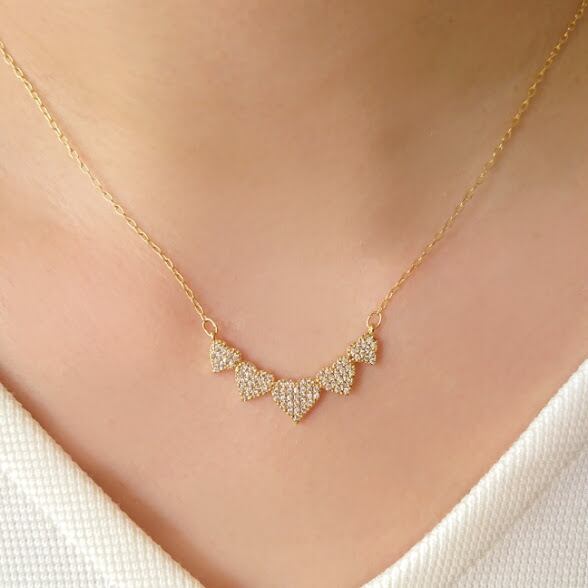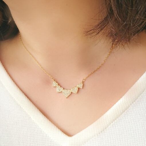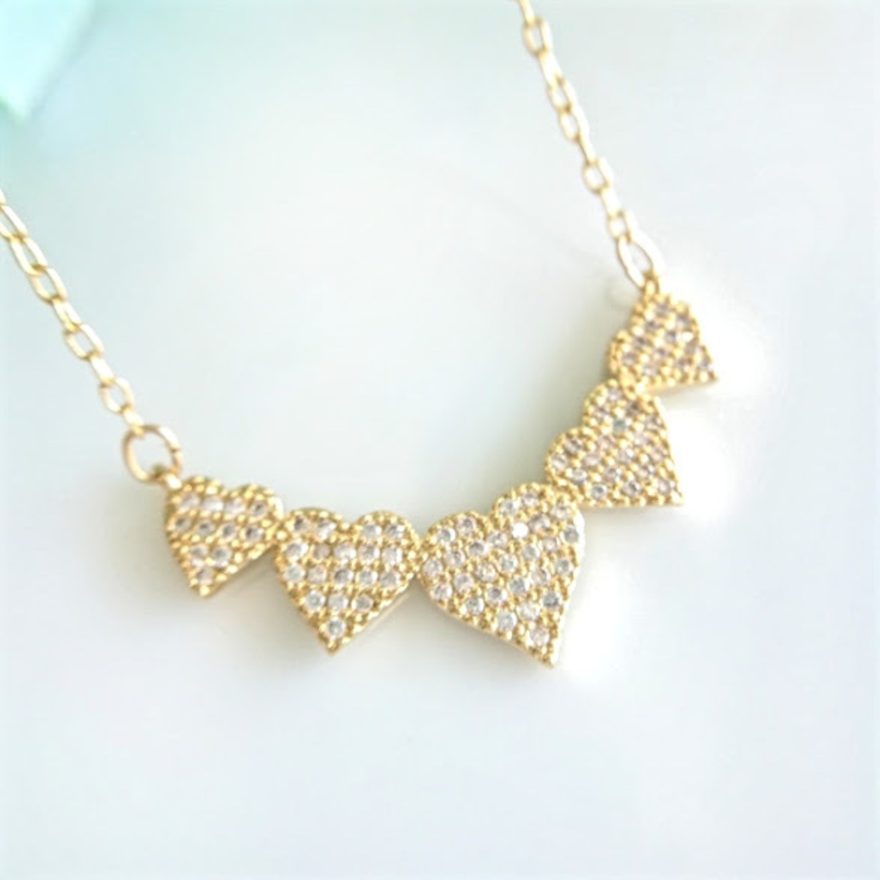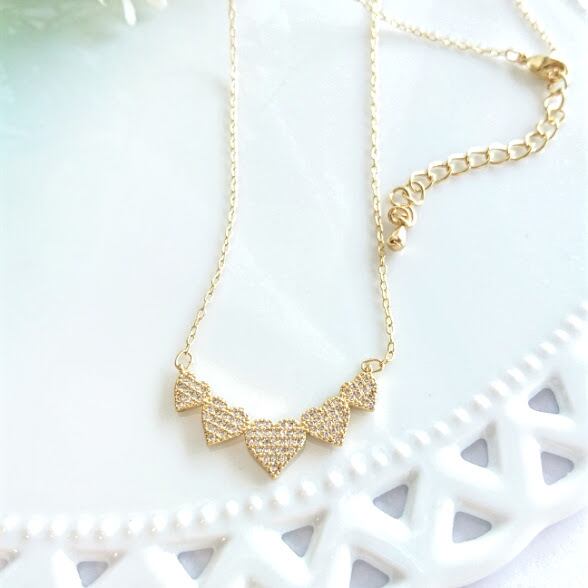 ガーランドのように並んだハートは、胸元で女性らしい曲線を描きます。