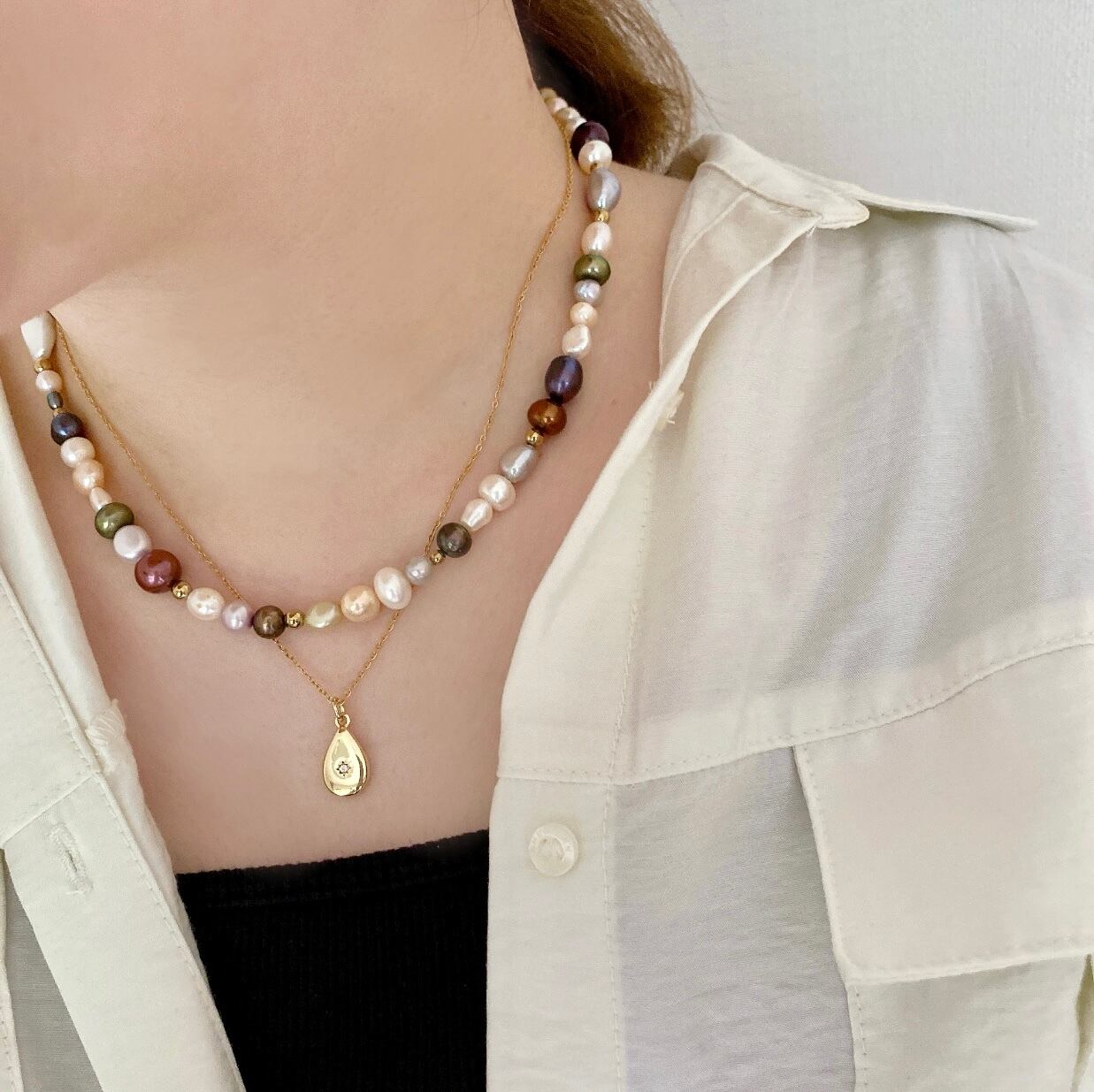単品使いもちろん、お手持ちのネックレスとのレイヤードにも◎