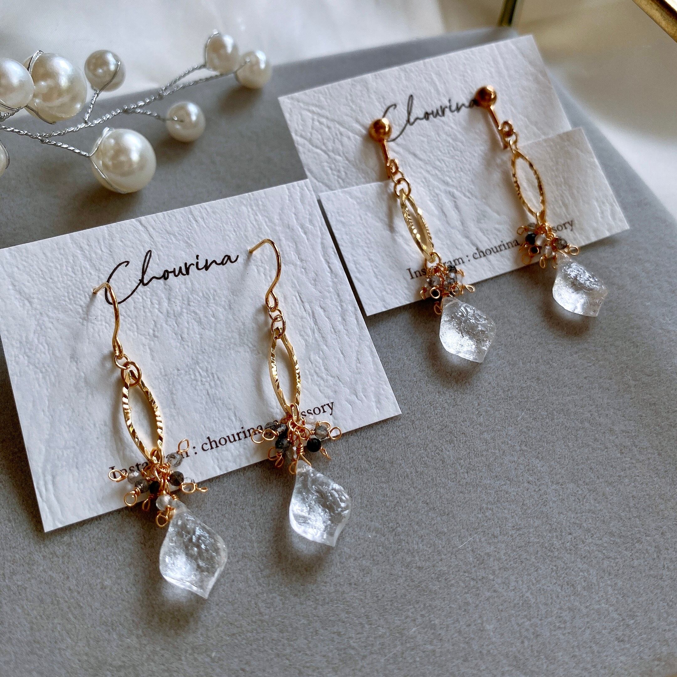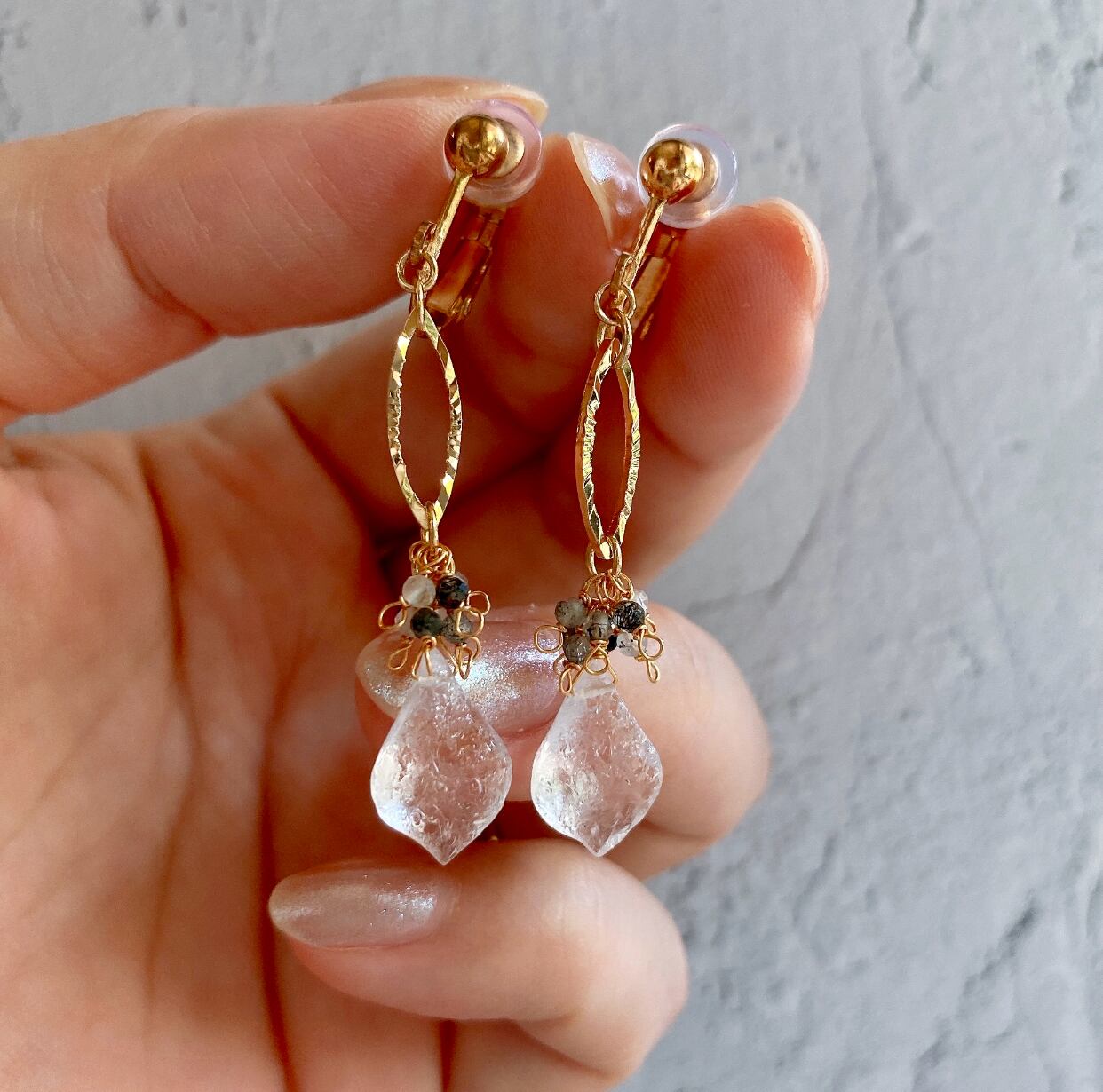 クリスタル/トルマリンクォーツ/モノトーン/ガラス/天然石/14kgf/マーブル/淡水パール/パール/ゴールド/プレゼント/誕生日プレゼント/誕生日石/まる/花/チェコビーズ/モノトーン/差し色/パール/ドロップ