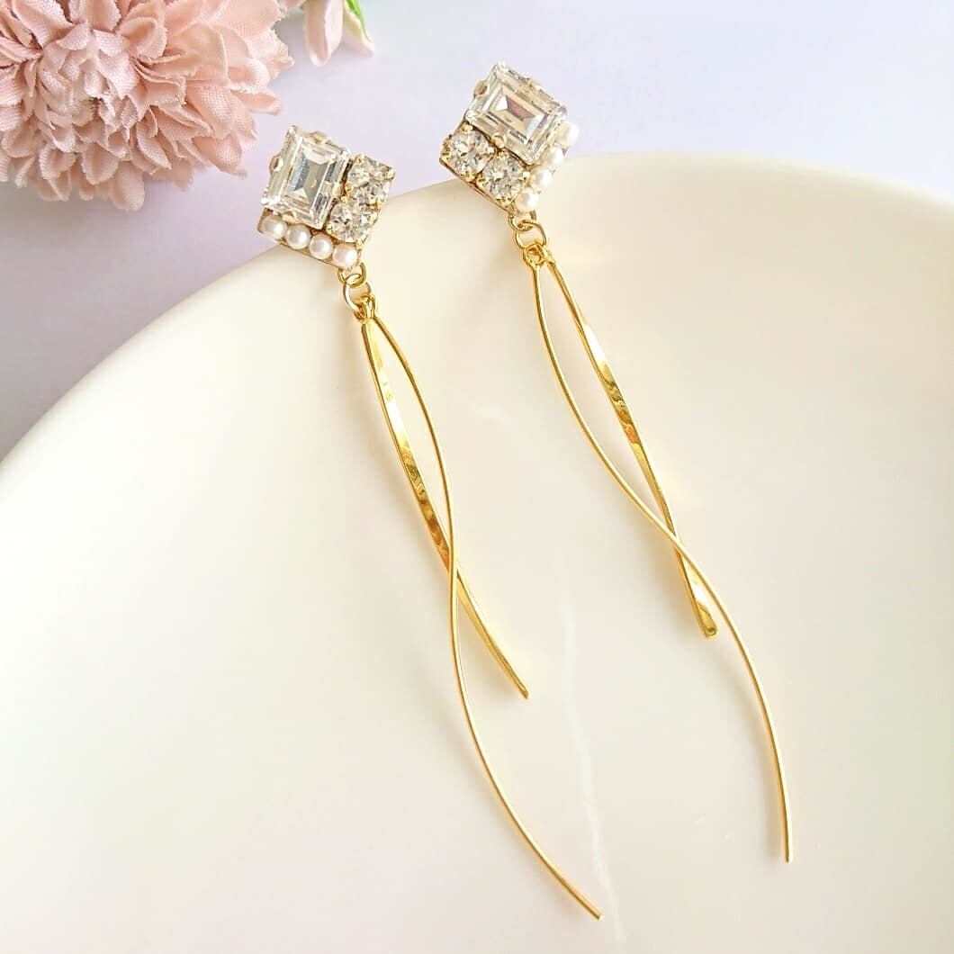 クリスタルスワロフスキーとパールを合わせた可憐なイヤリング/ピアスです。