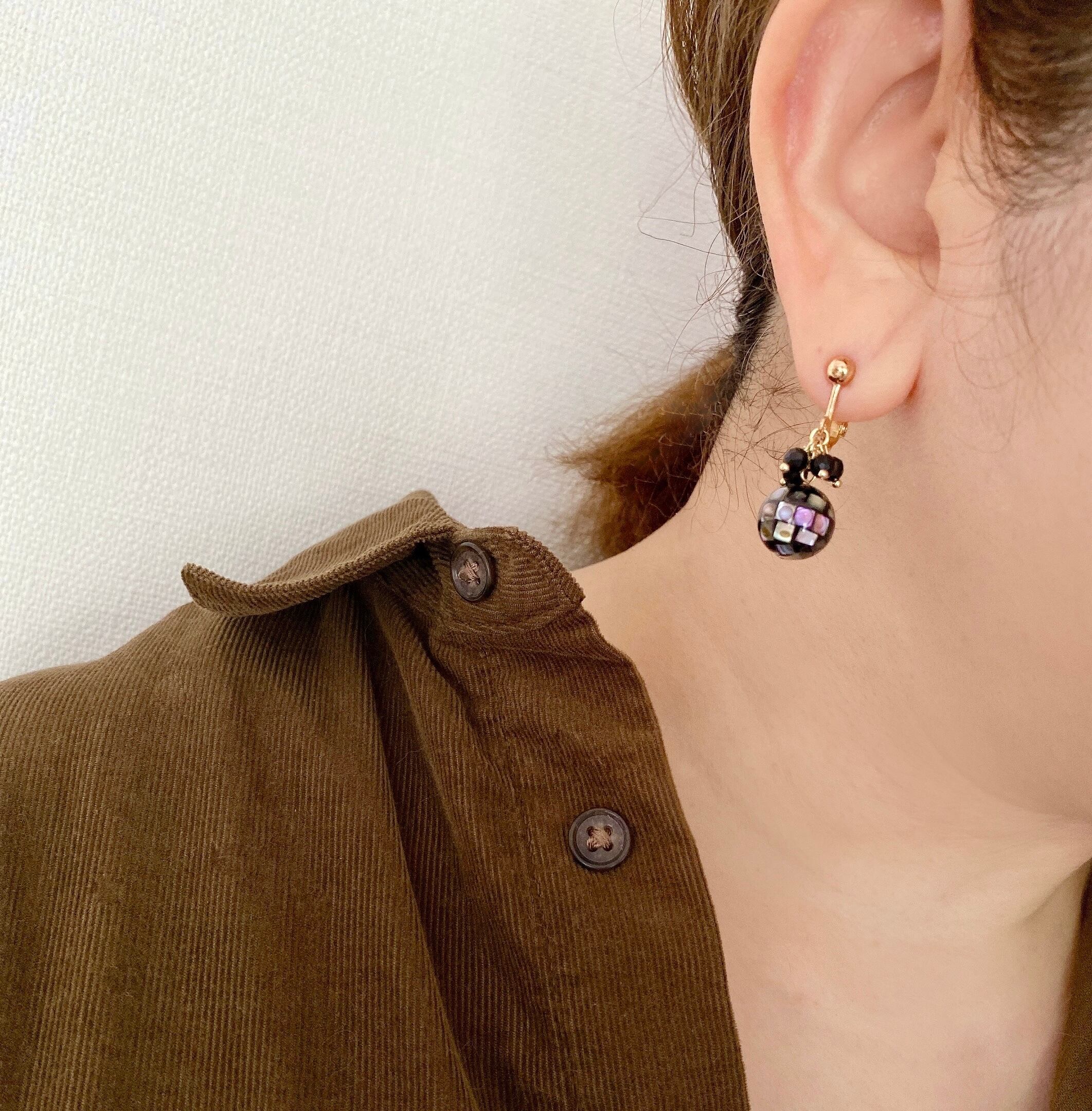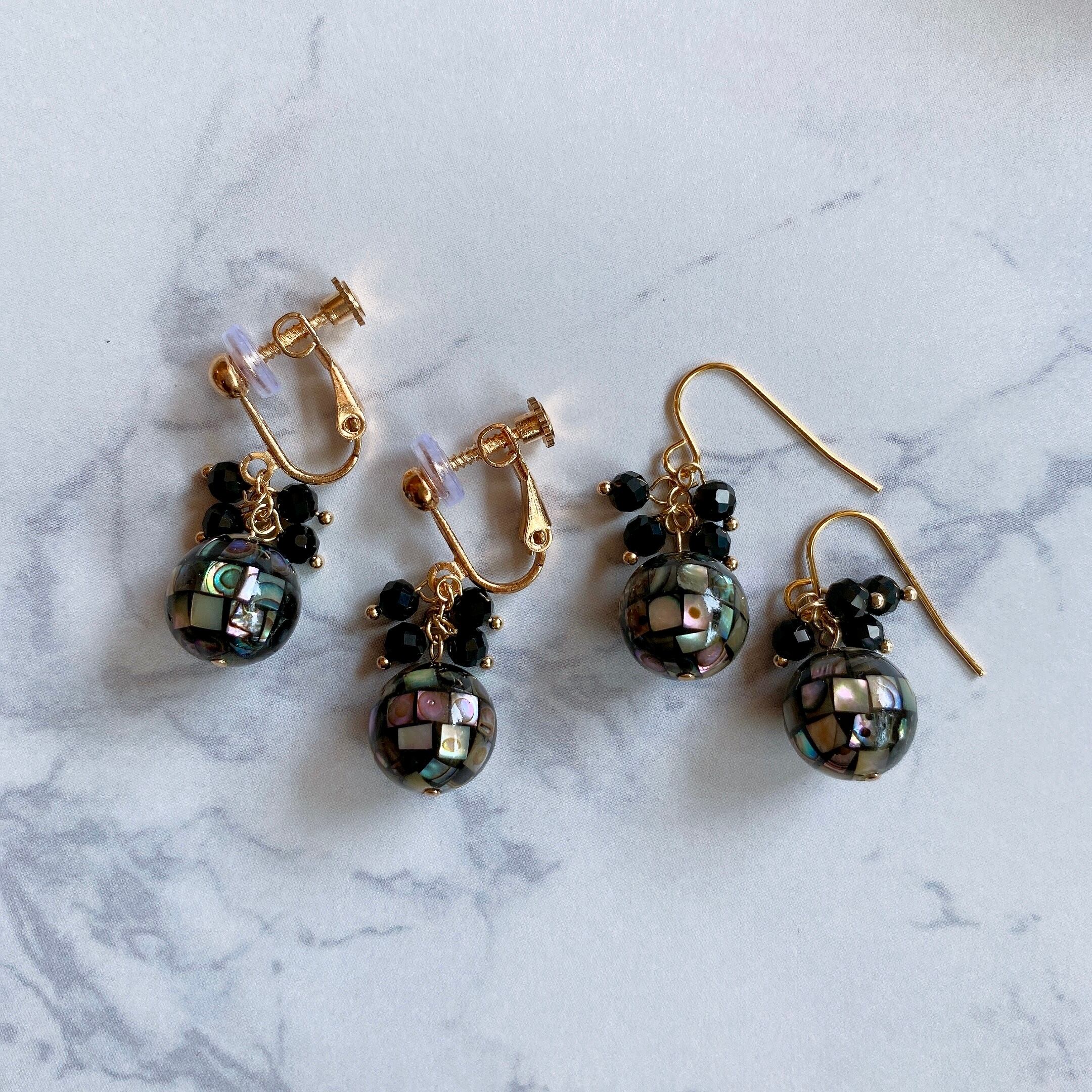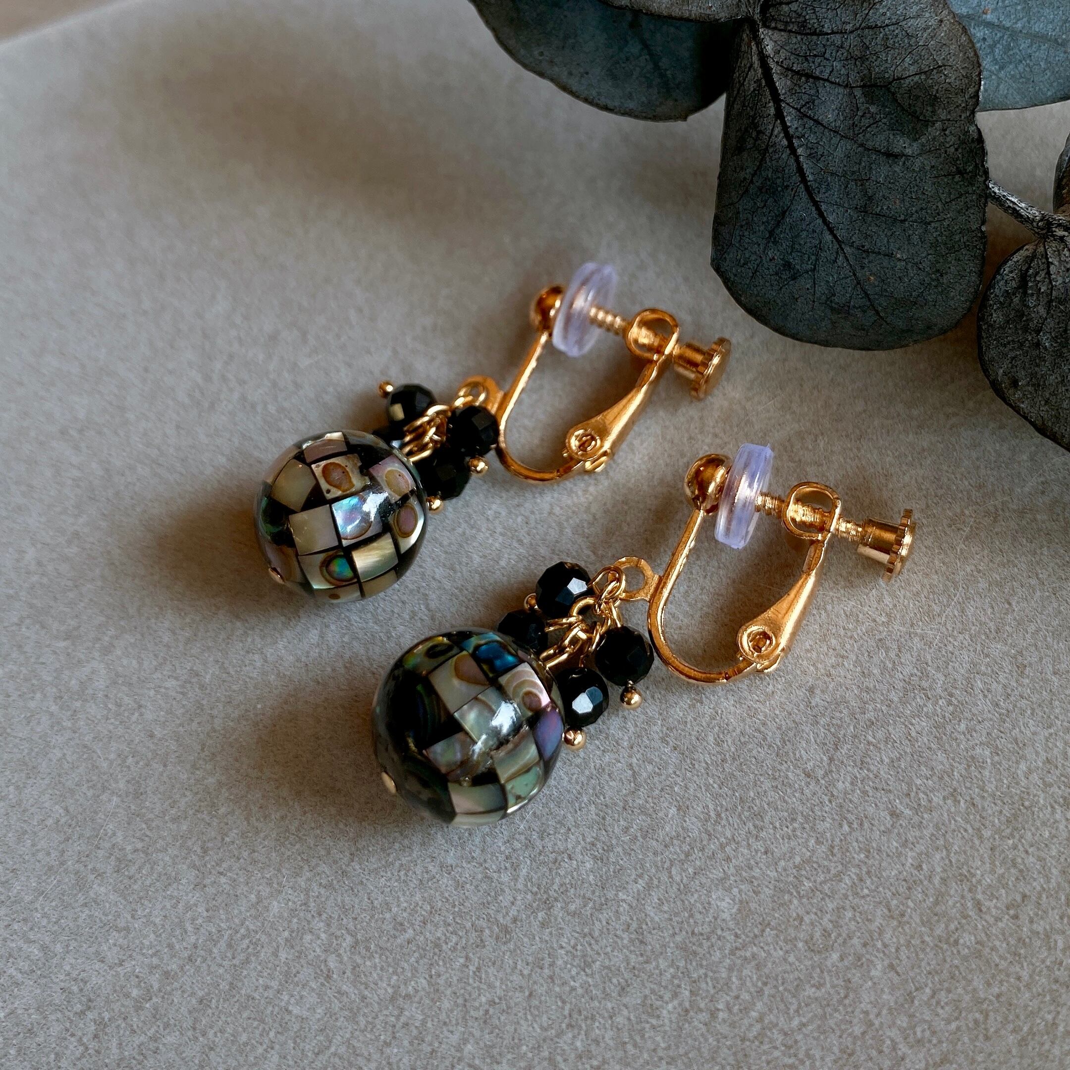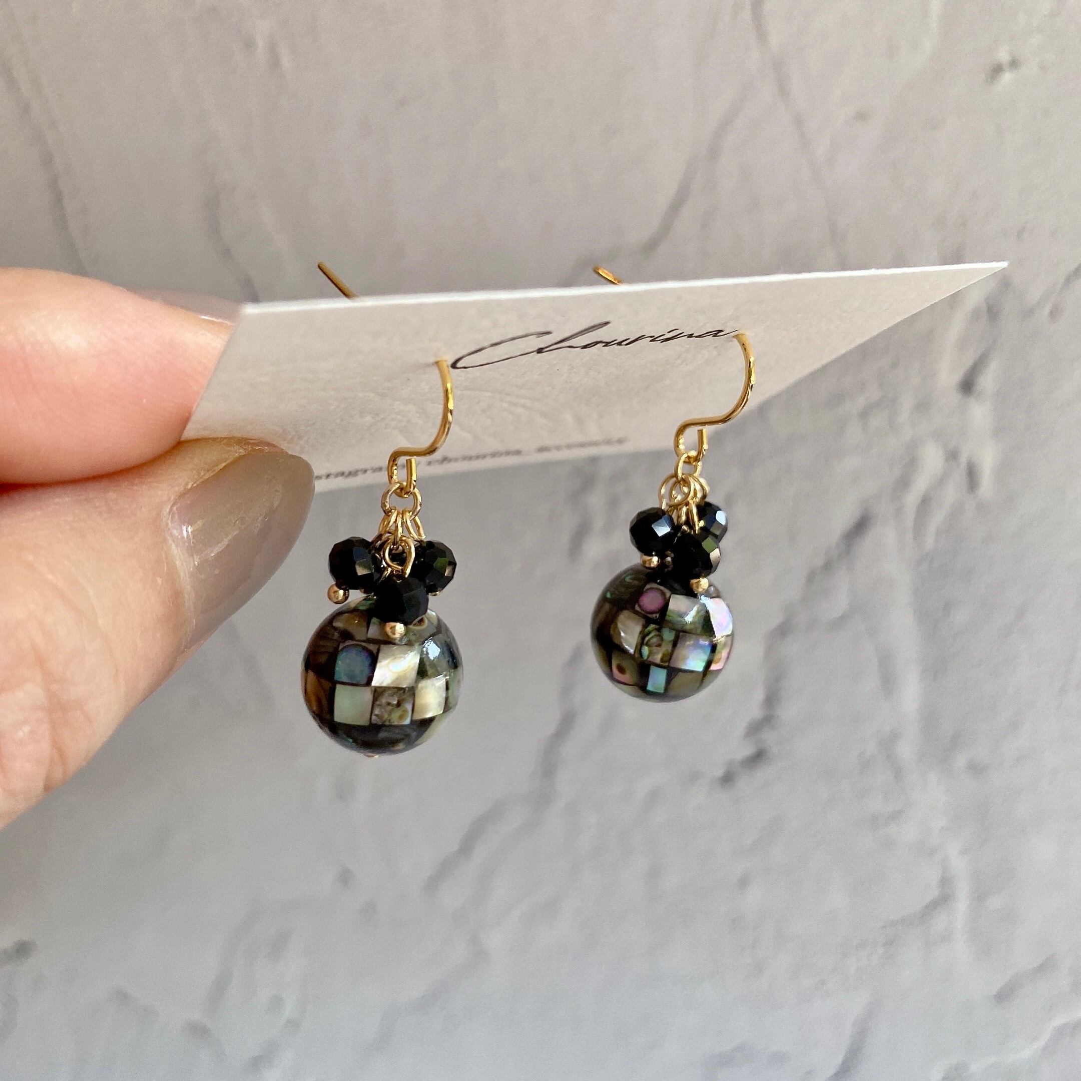 モノトーン/くすみカラー/ブラック/アバロンシェル/天然石/14kgf/マーブル/淡水パール/パール/ゴールド/プレゼント/誕生日プレゼント/誕生日石/まる/花/オニキス/モノトーン/差し色/パール/ドロップ