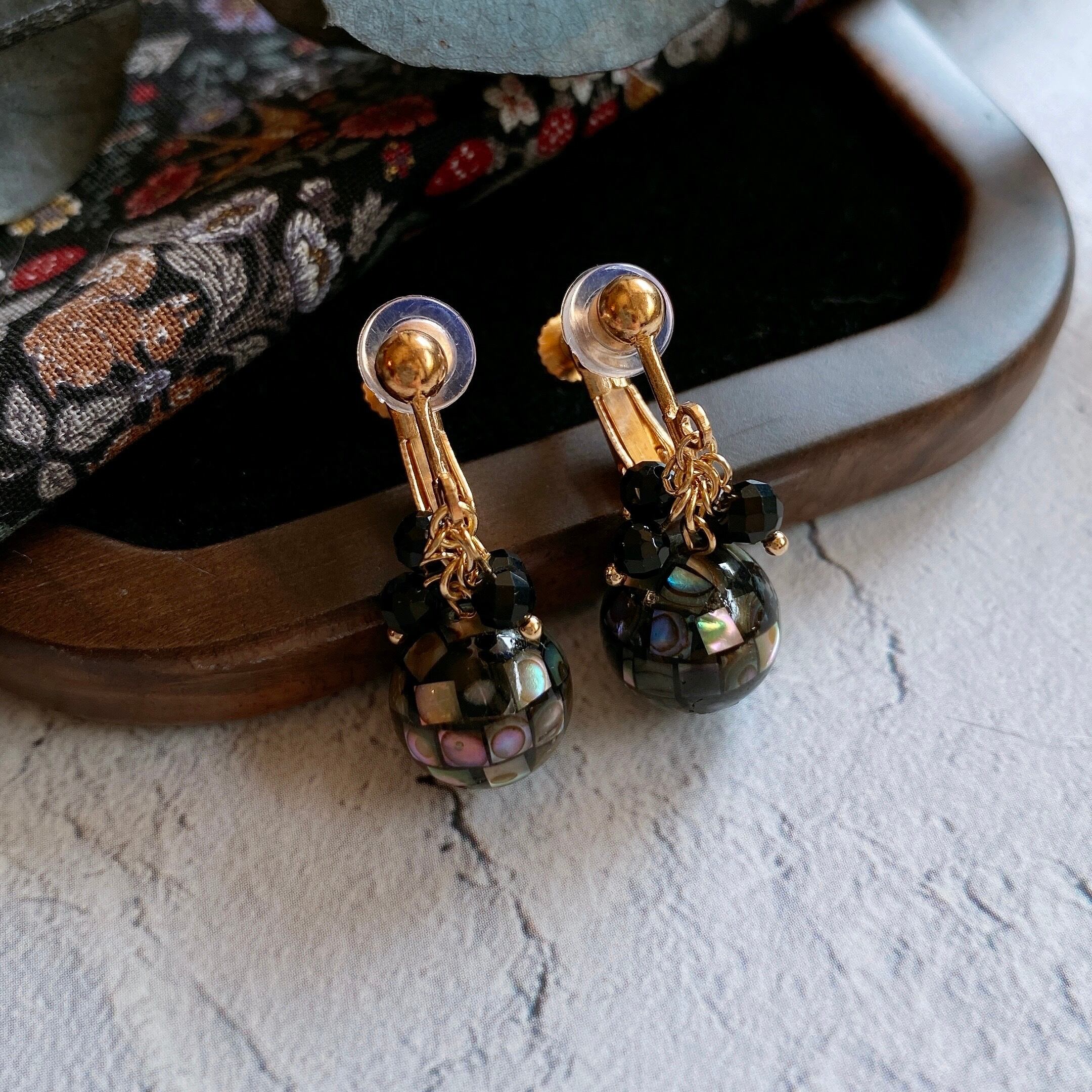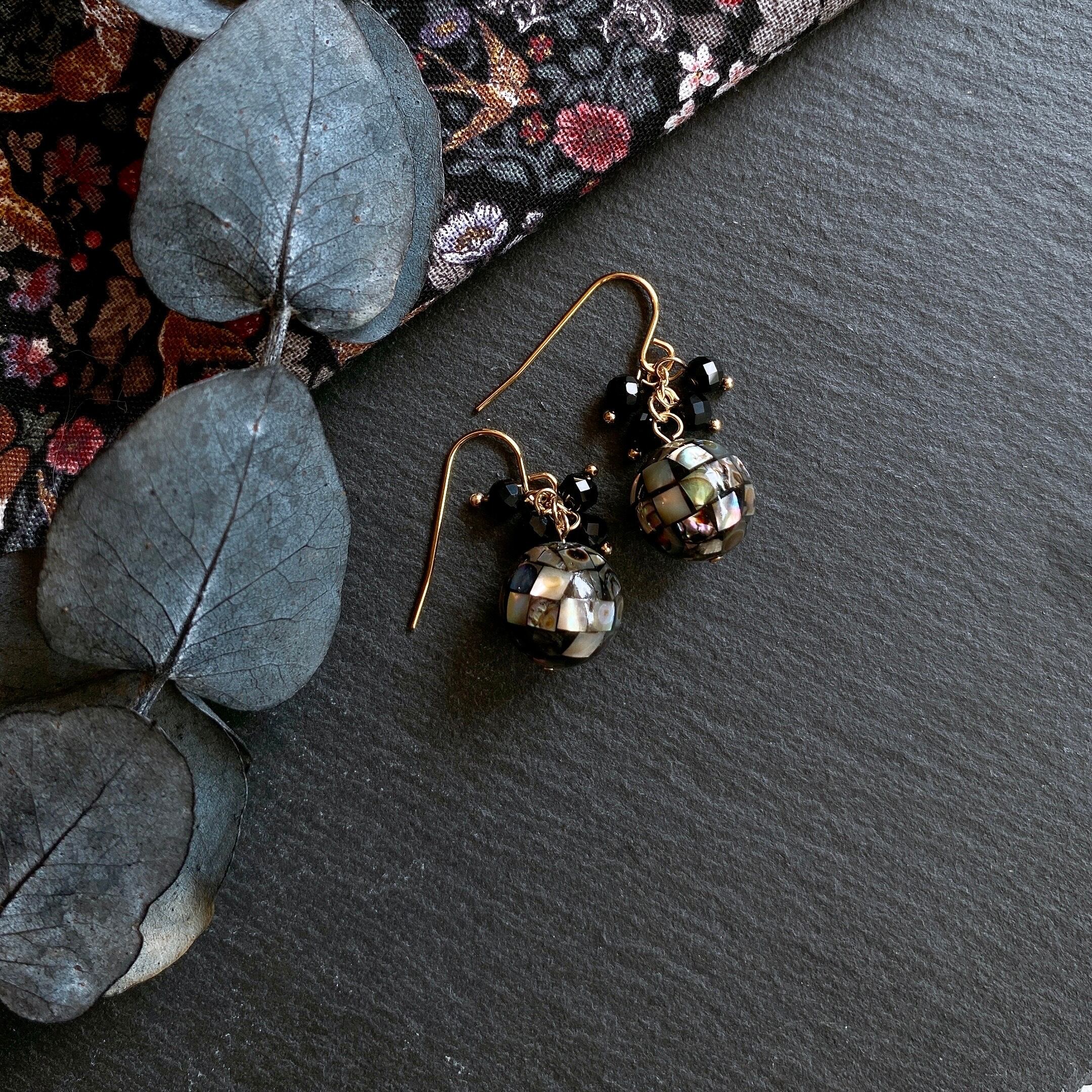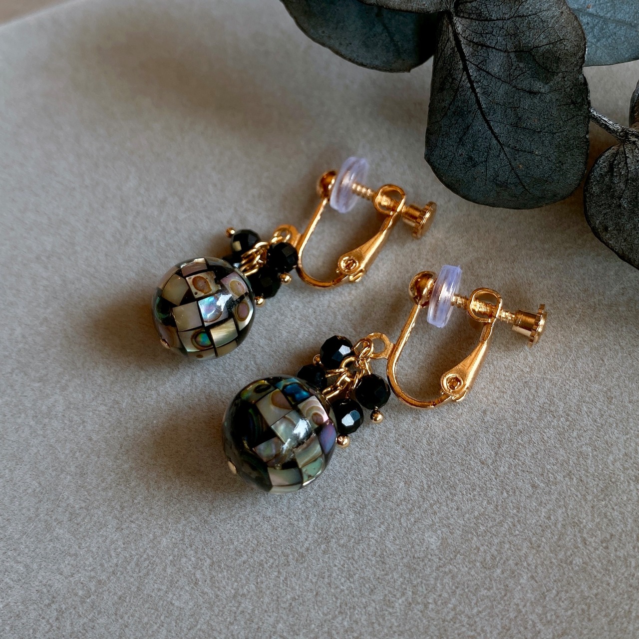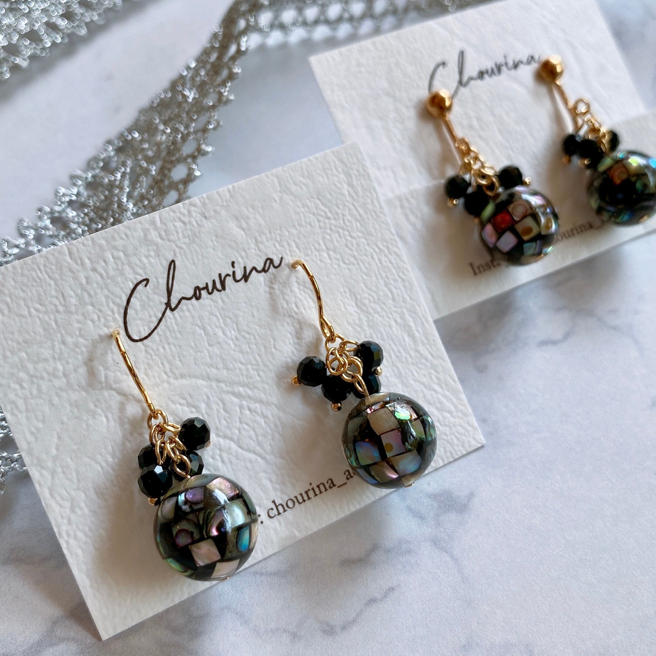 モノトーン/くすみカラー/ブラック/アバロンシェル/天然石/14kgf/マーブル/淡水パール/パール/ゴールド/プレゼント/誕生日プレゼント/誕生日石/まる/花/オニキス/モノトーン/差し色/パール/ドロップ