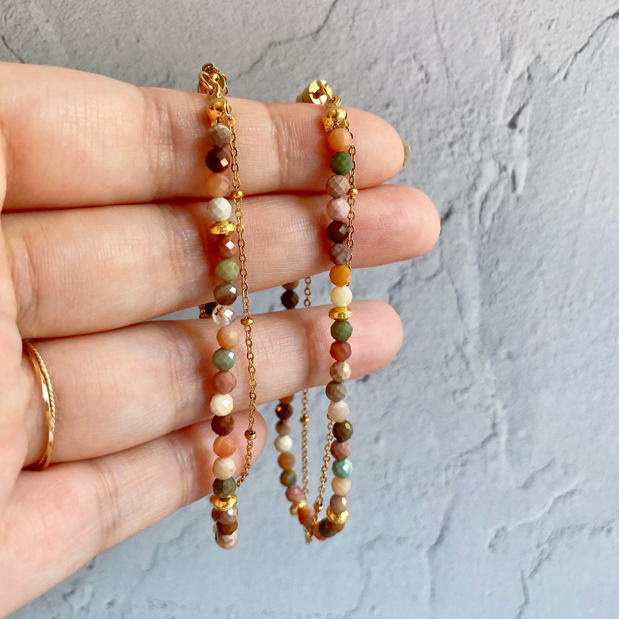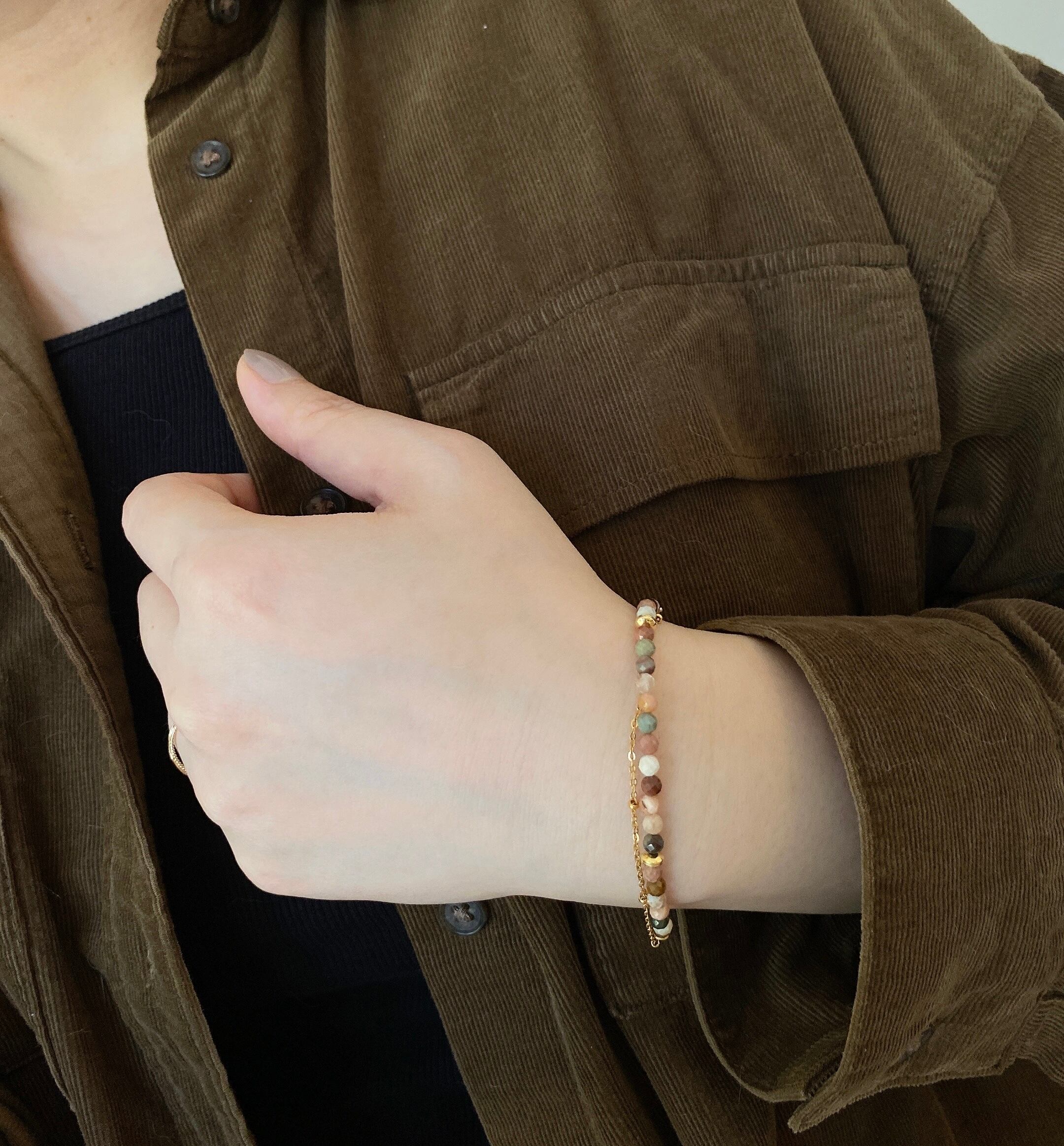 くすみカラーの中にキラリと煌めくのはsilver925に18金コーティングを施したビーズ。