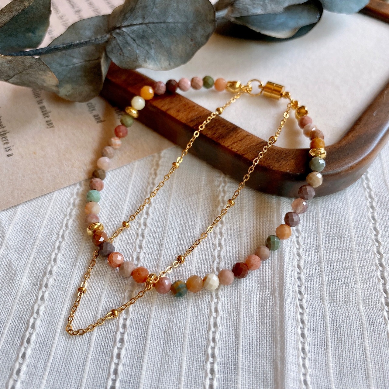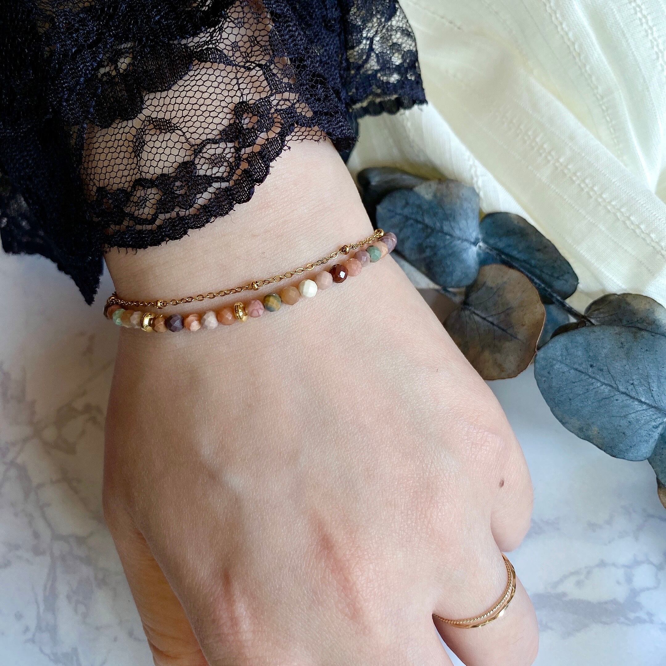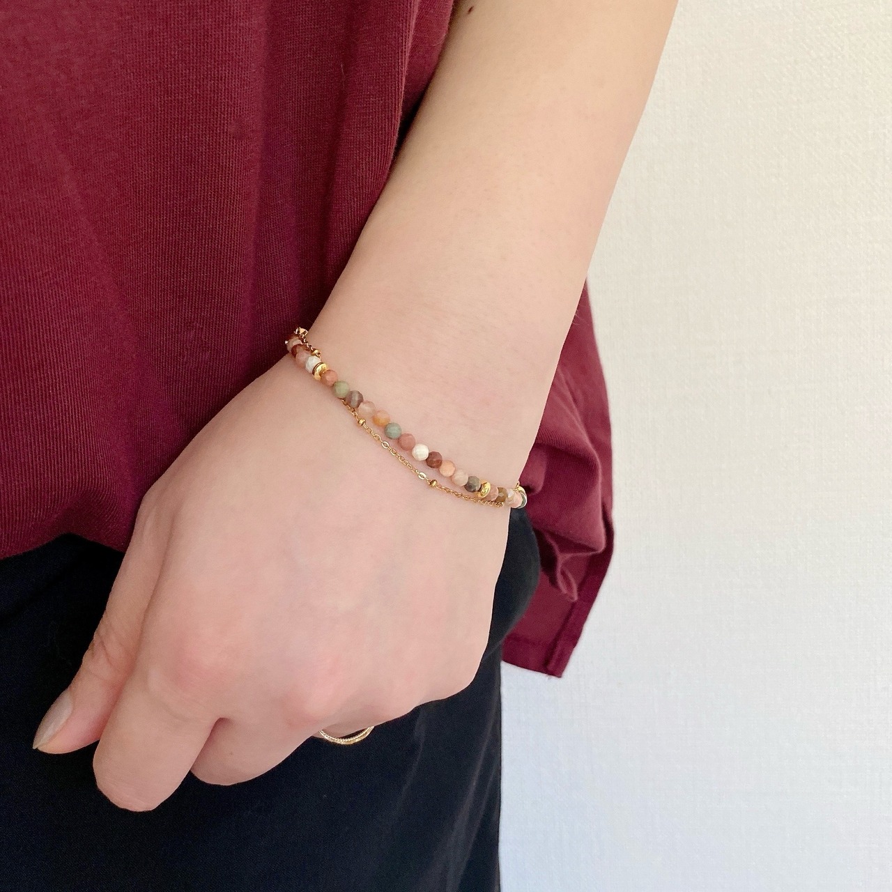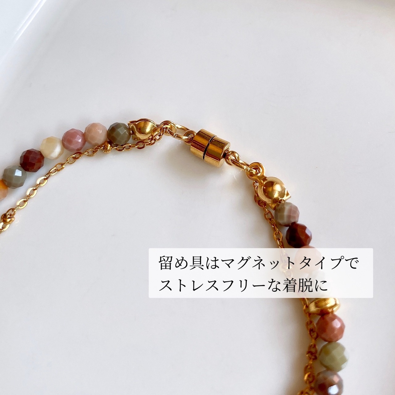 ナチュラルな色合いのアゲートに華やかさをプラスして