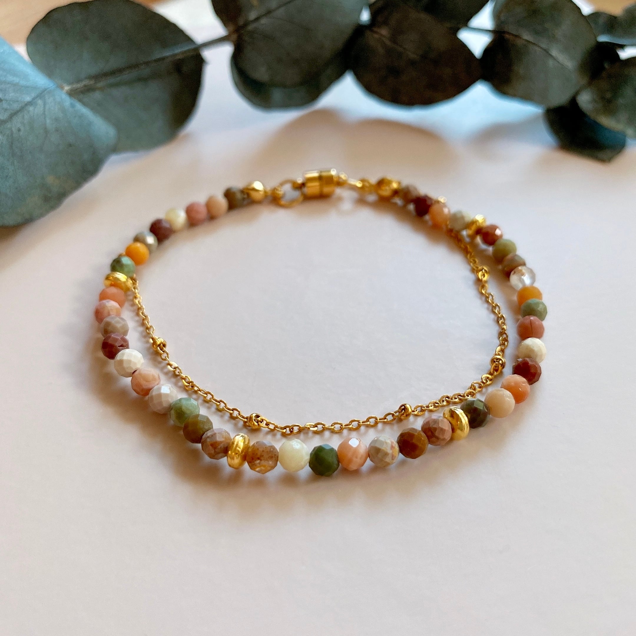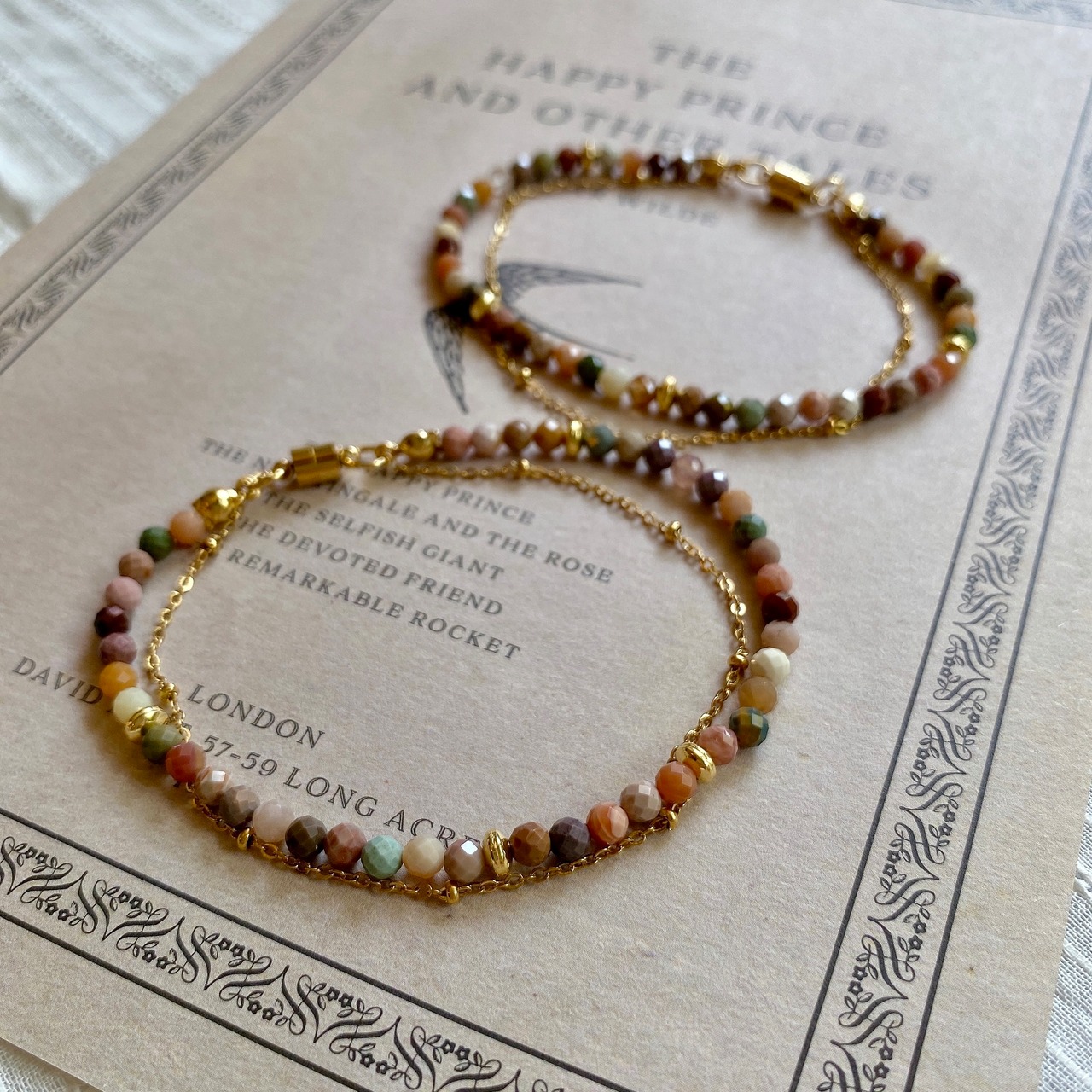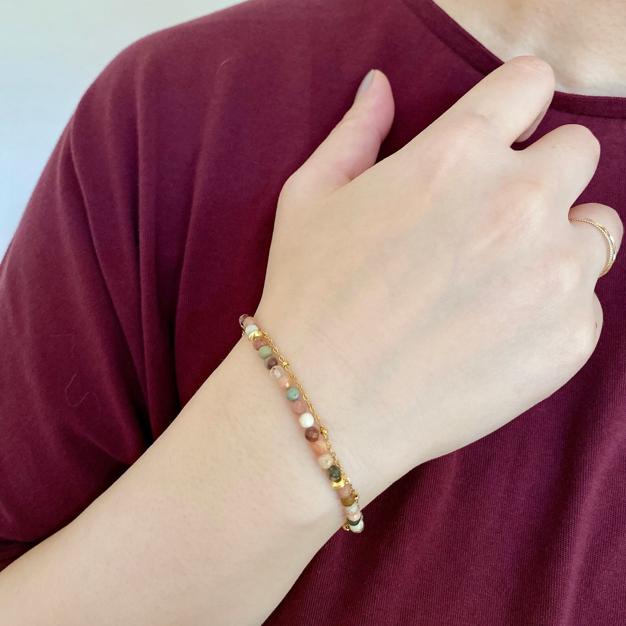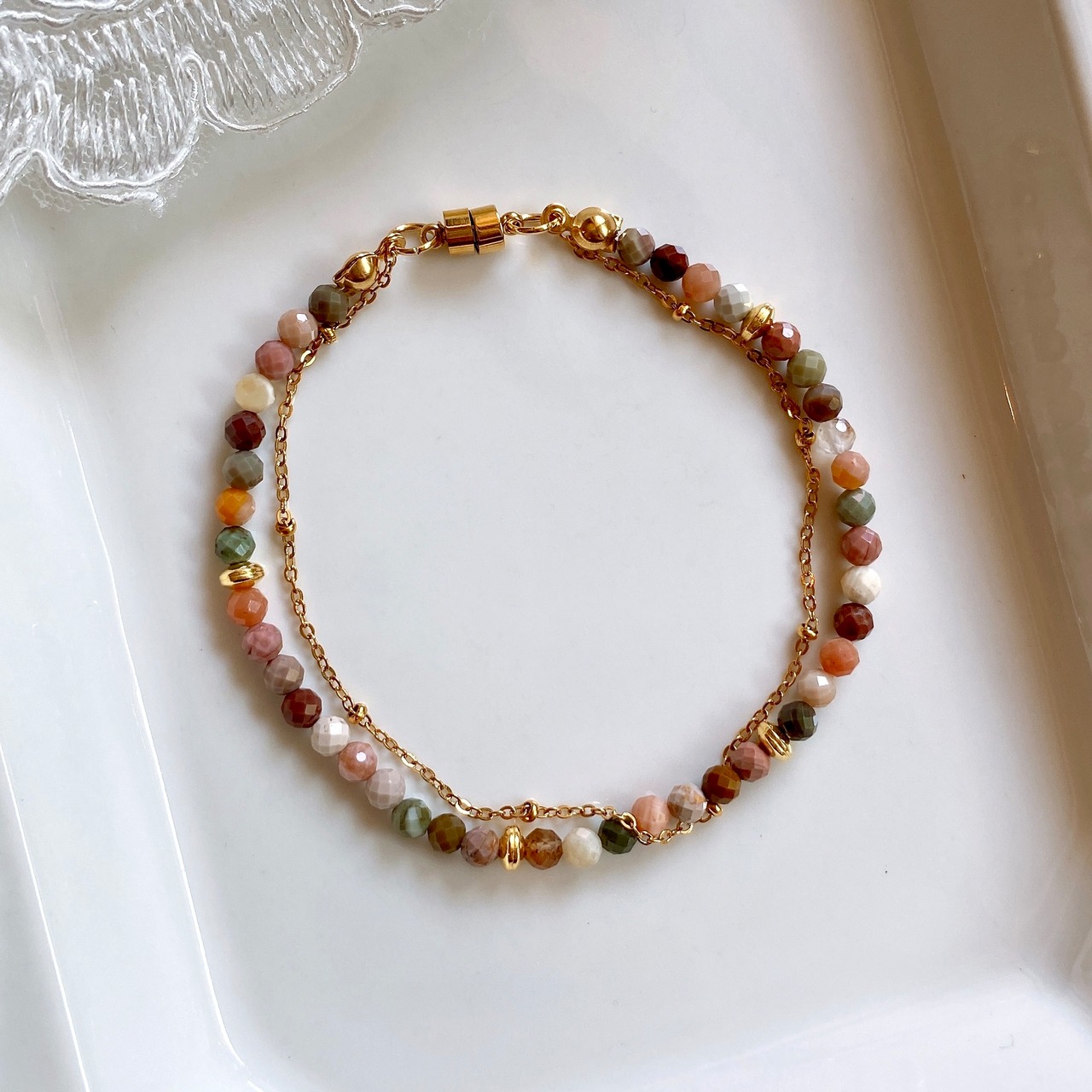 ナチュラルな色合いのアゲートに華やかさをプラスして