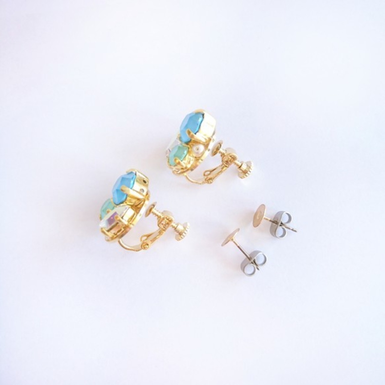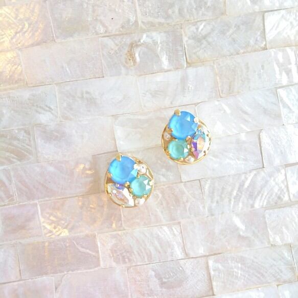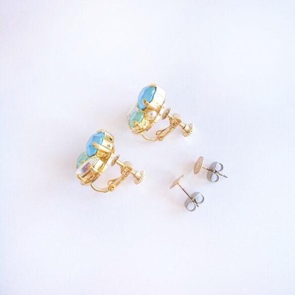 青空や夏の海を感じさせるブルーとミントのような淡いグリーンの組み合わせで、涼しげな耳元に。
