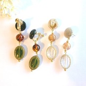 こっくりとしたべっ甲ビーズの下に秋の実を思わせるオリーブ色のアンティーク調ビーズを飾りました。