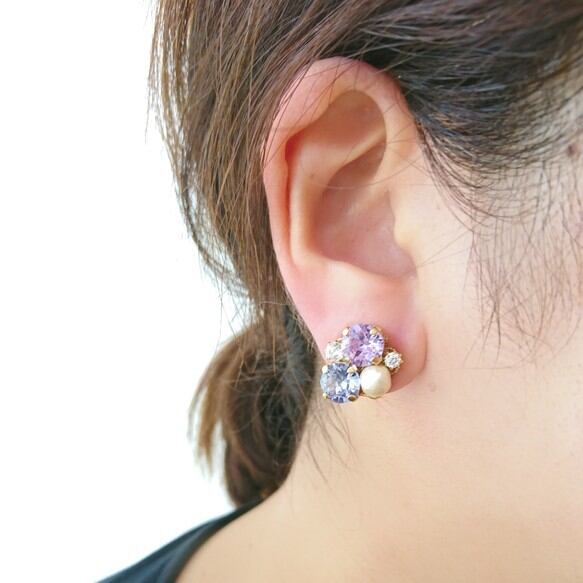 パープル系のスワロフスキーでビジューイヤリングを作りました☆