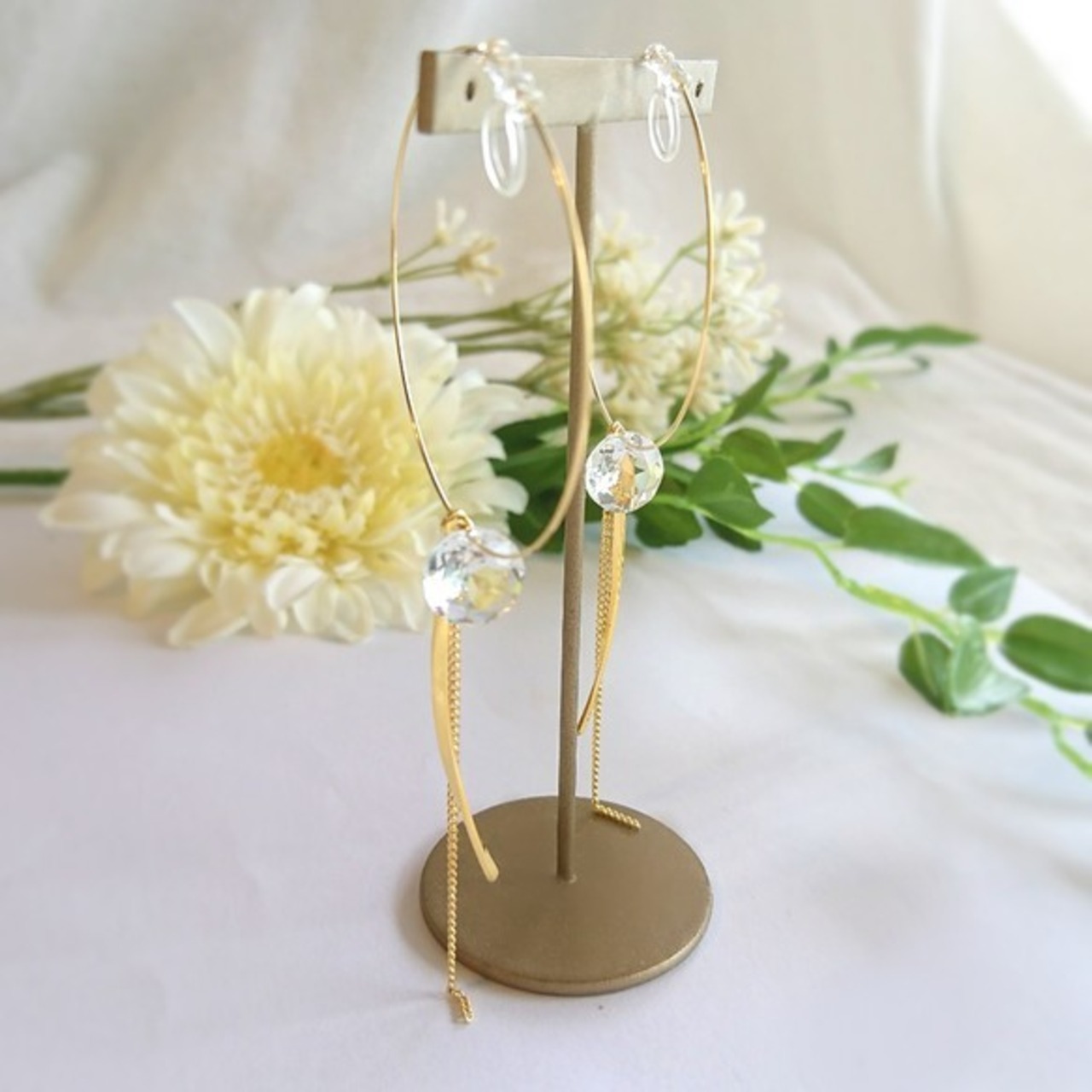 金具で固定していない為、動きに合わせて煌めきと透明感のある輝きを放ちます。