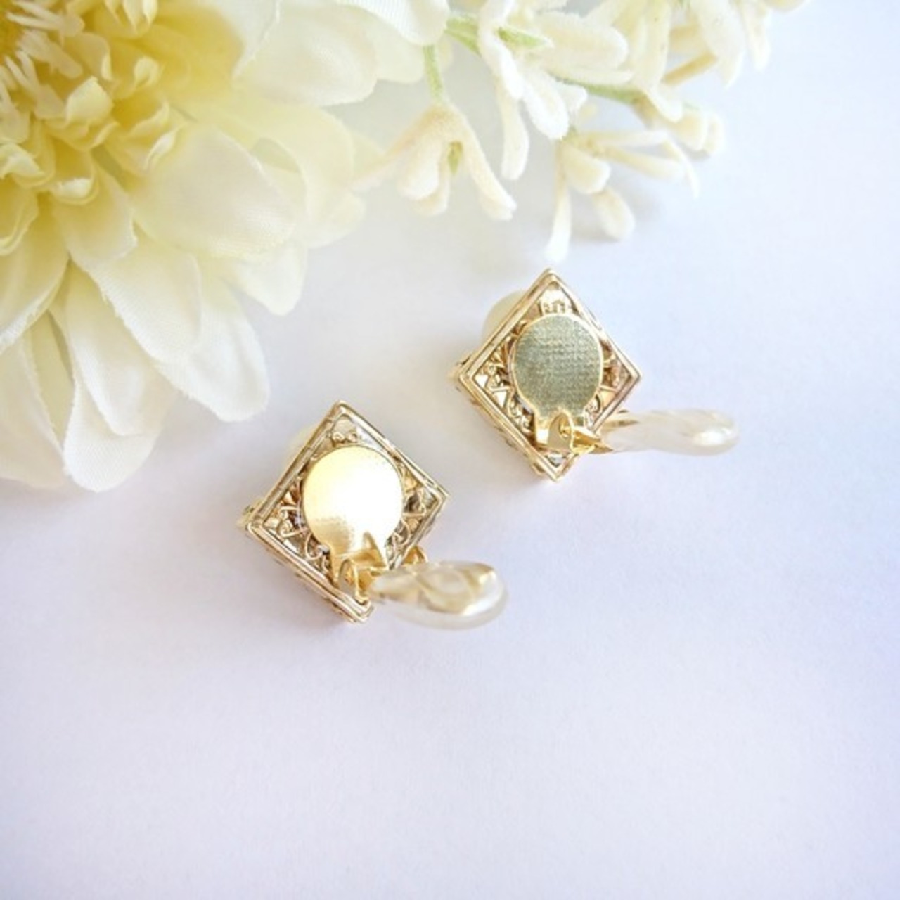 スクエアなので、ピリッとエッジの効いた聡明なイヤリングに仕上がりました。