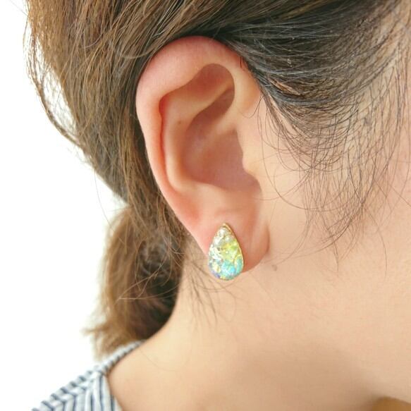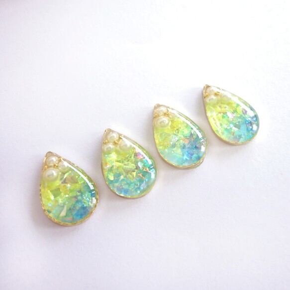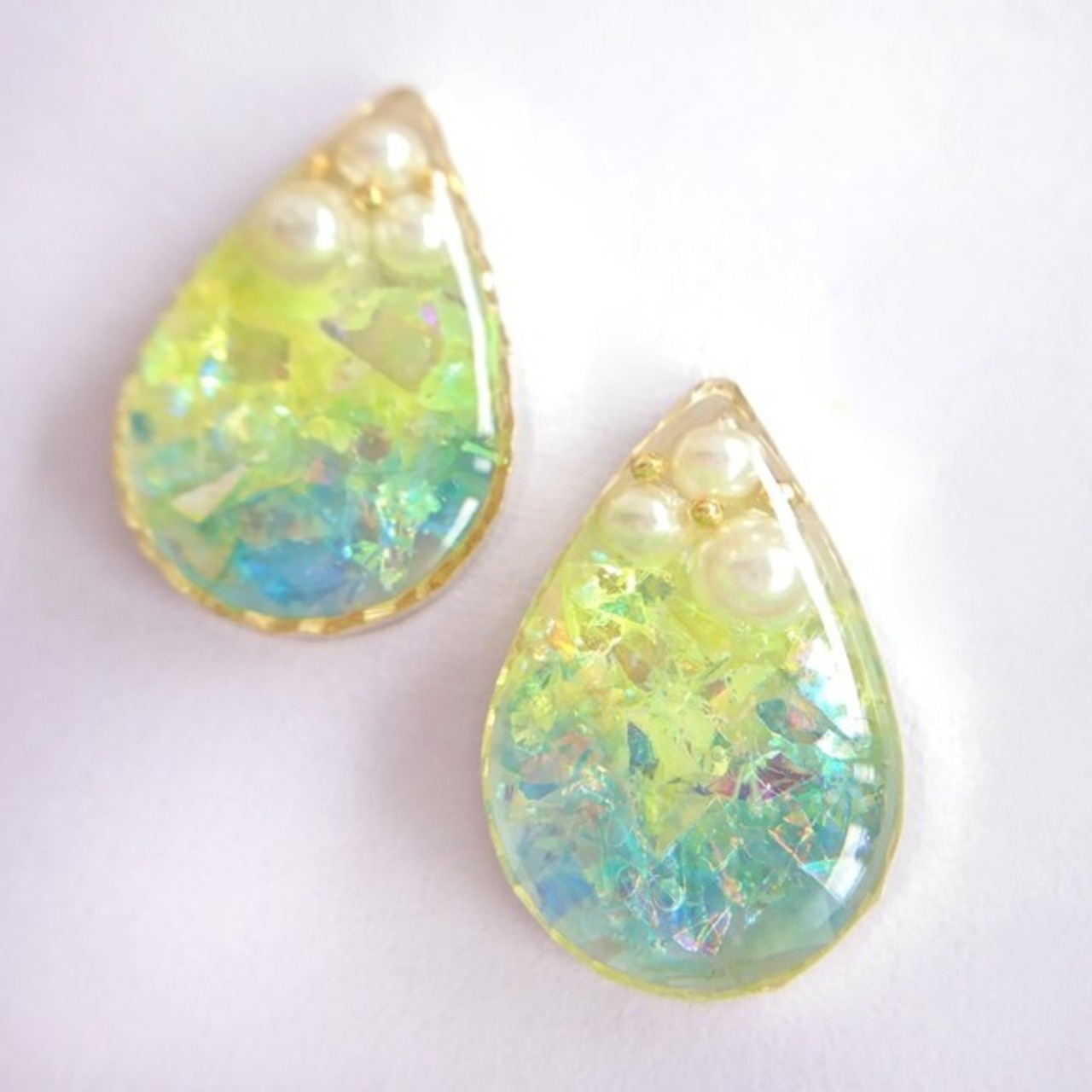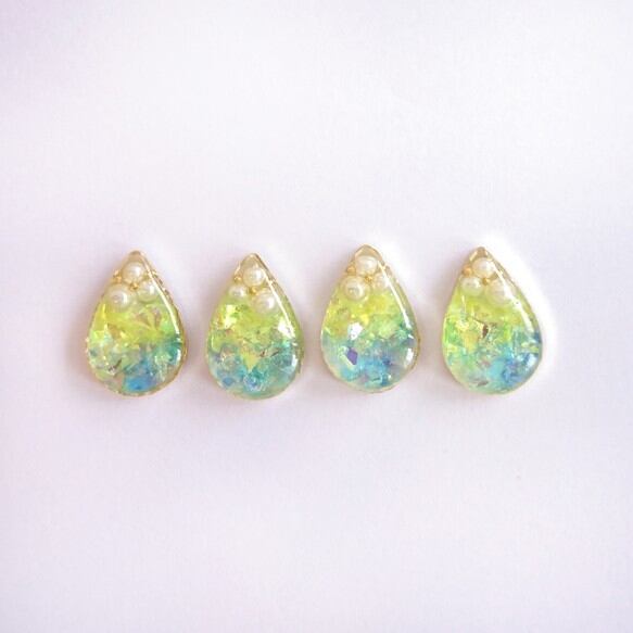 淡いブルーからイエローのグラデーションを作り、ちょこんと小さなパールをあしらいました。