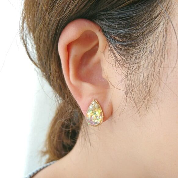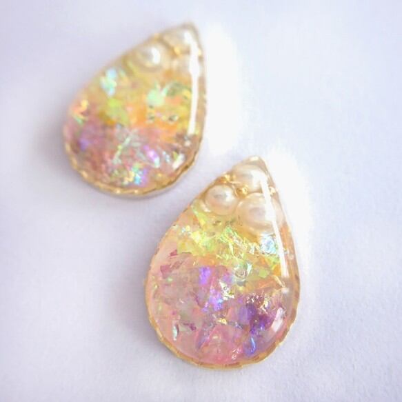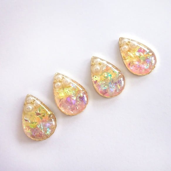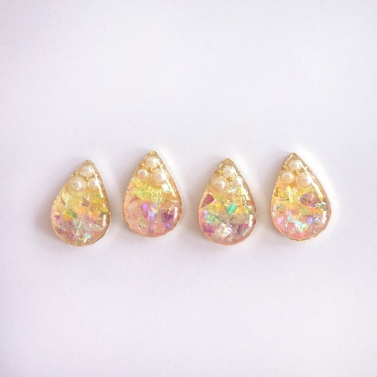 淡いパープルからオレンジのグラデーションを作り、ちょこんと小さなパールをあしらいました。