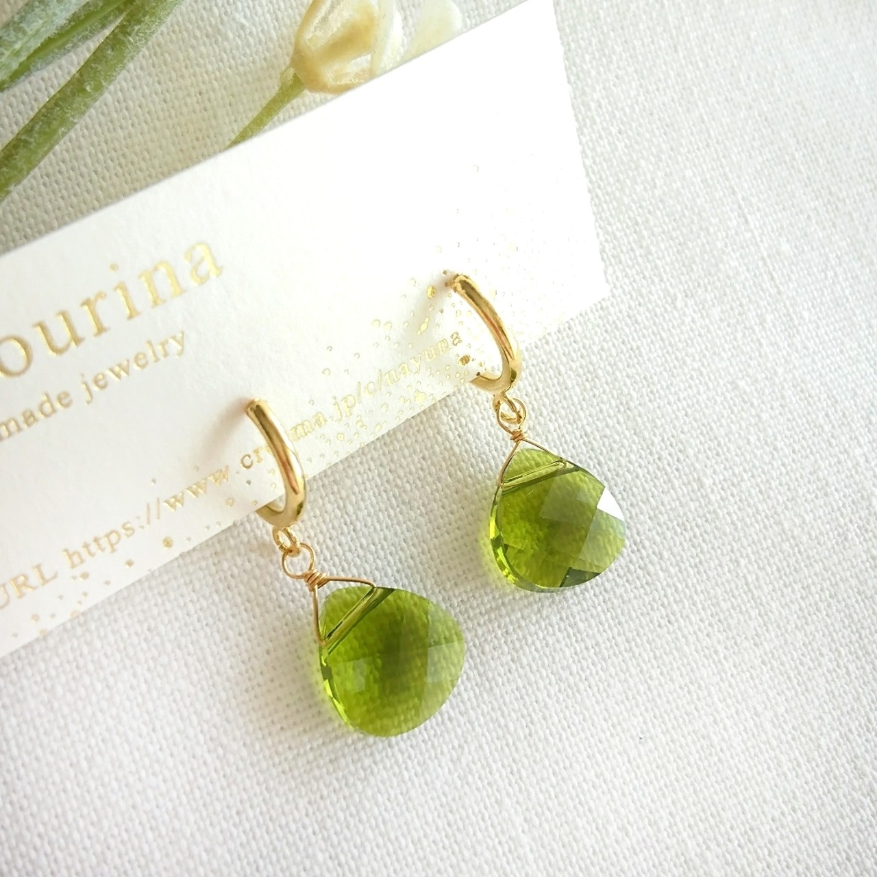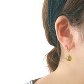 今期トレンドカラーの深みのあるカーキ色のスワロフスキーをフープイヤリングに仕立てました。