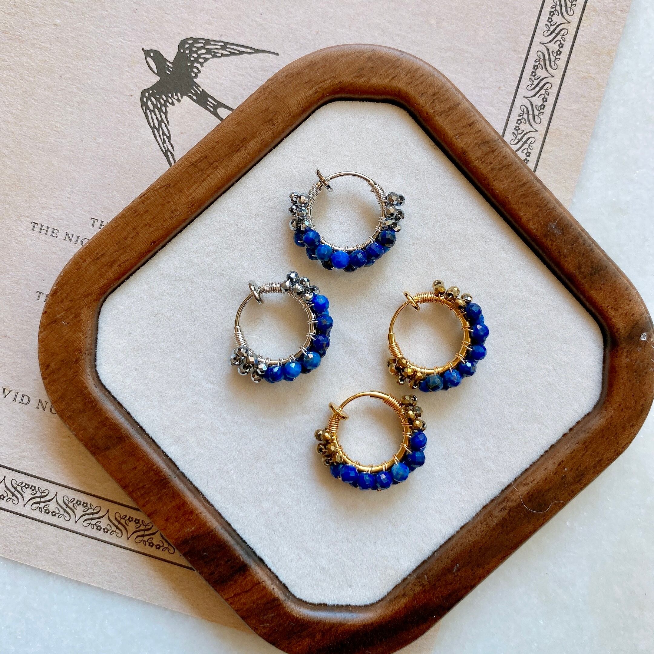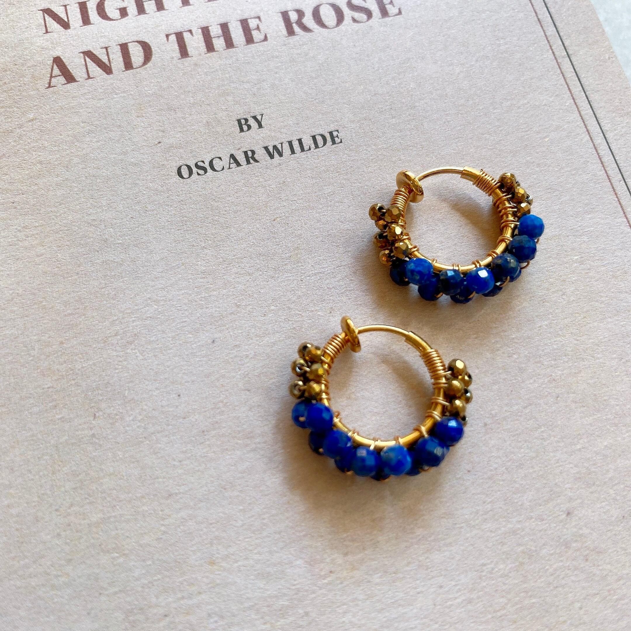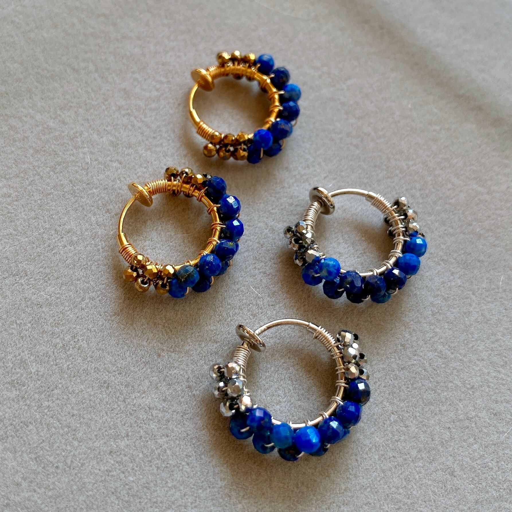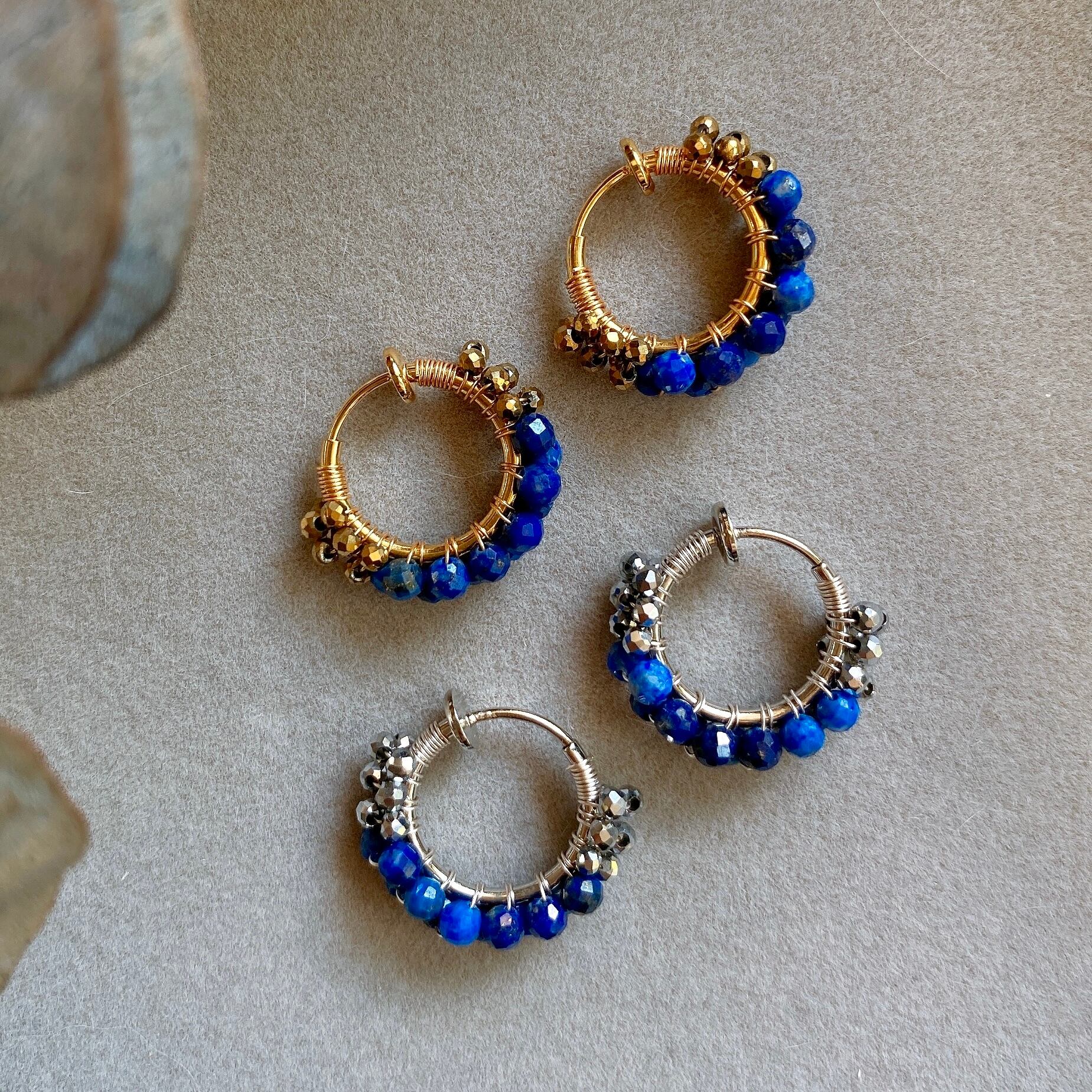 12月の誕生石、ラピスラズリをシンプルなフープイヤリング(ピアス)へ仕立てました。