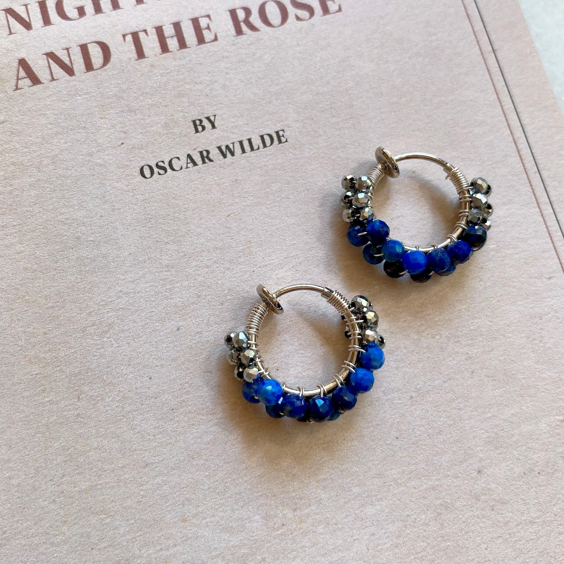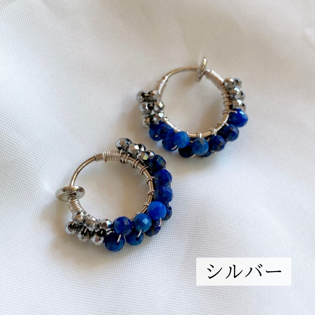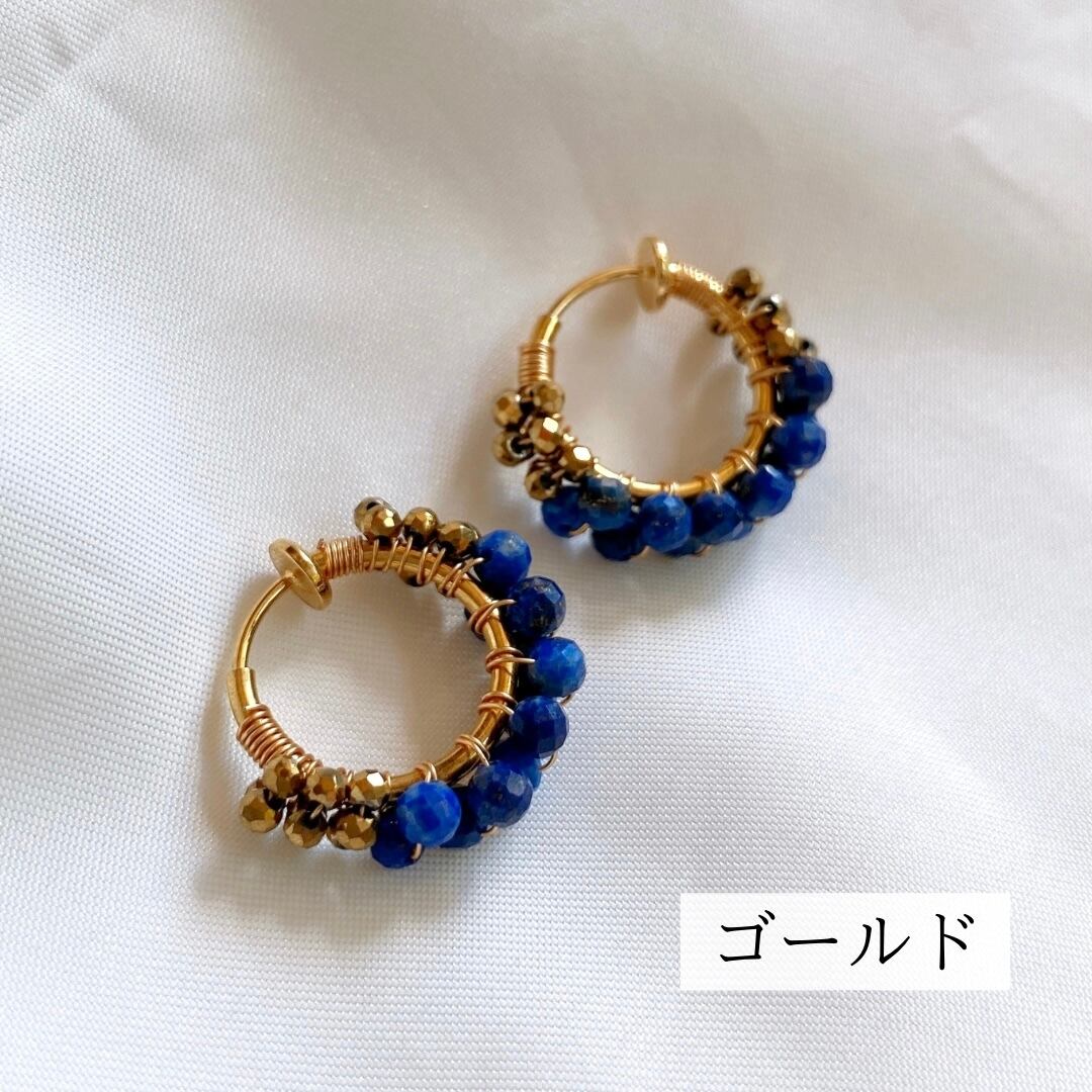 12月の誕生石、ラピスラズリをシンプルなフープイヤリング(ピアス)へ仕立てました。