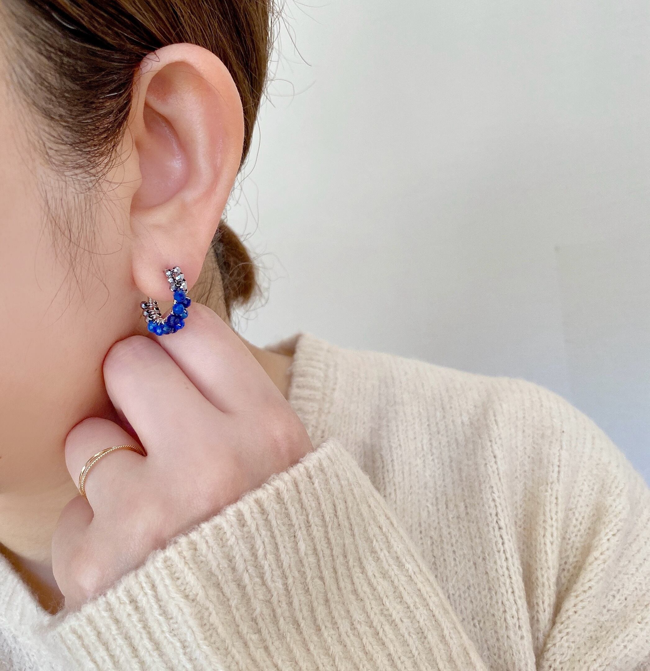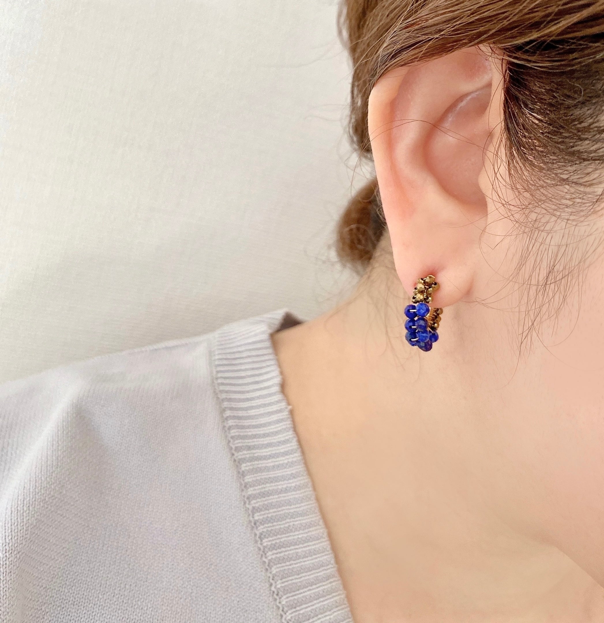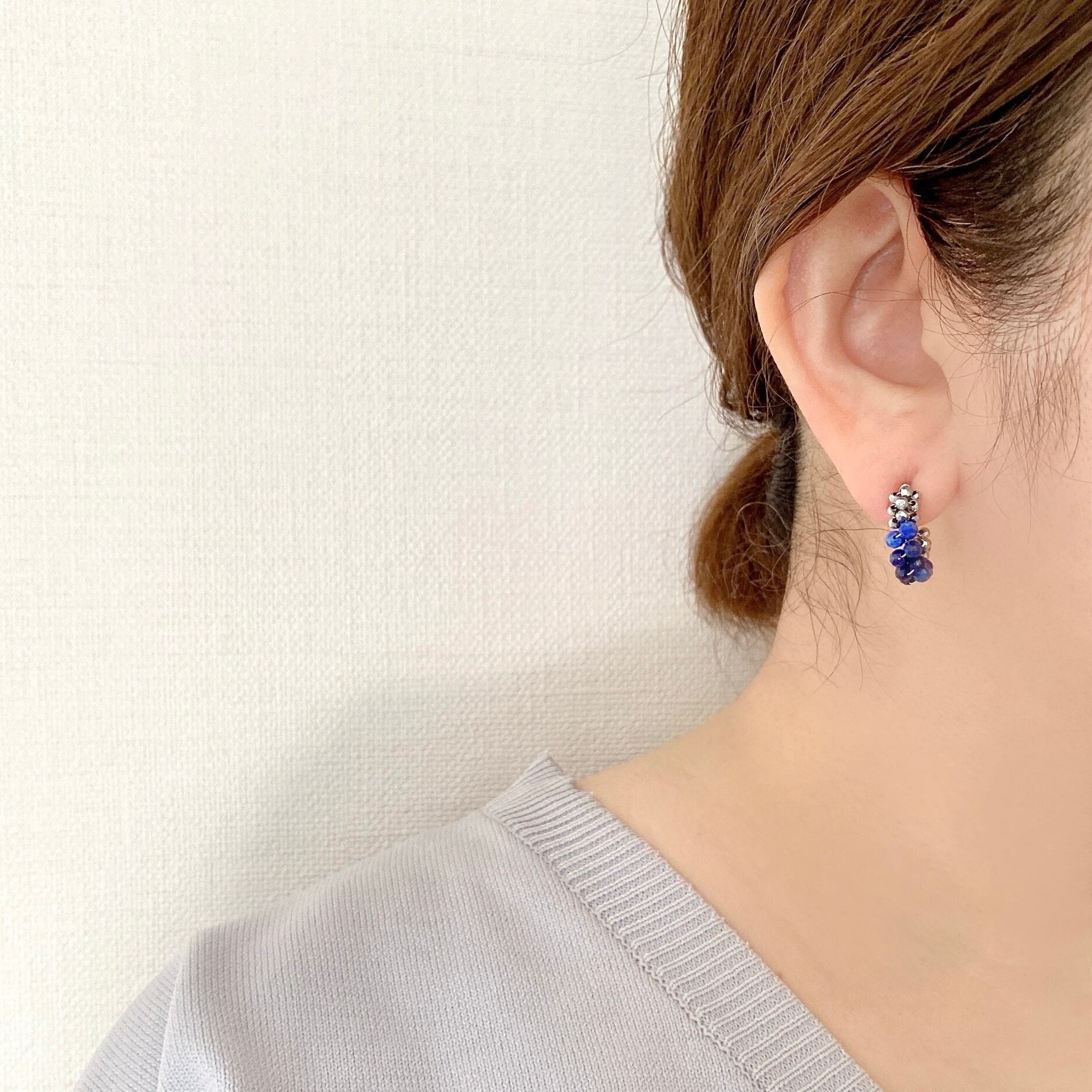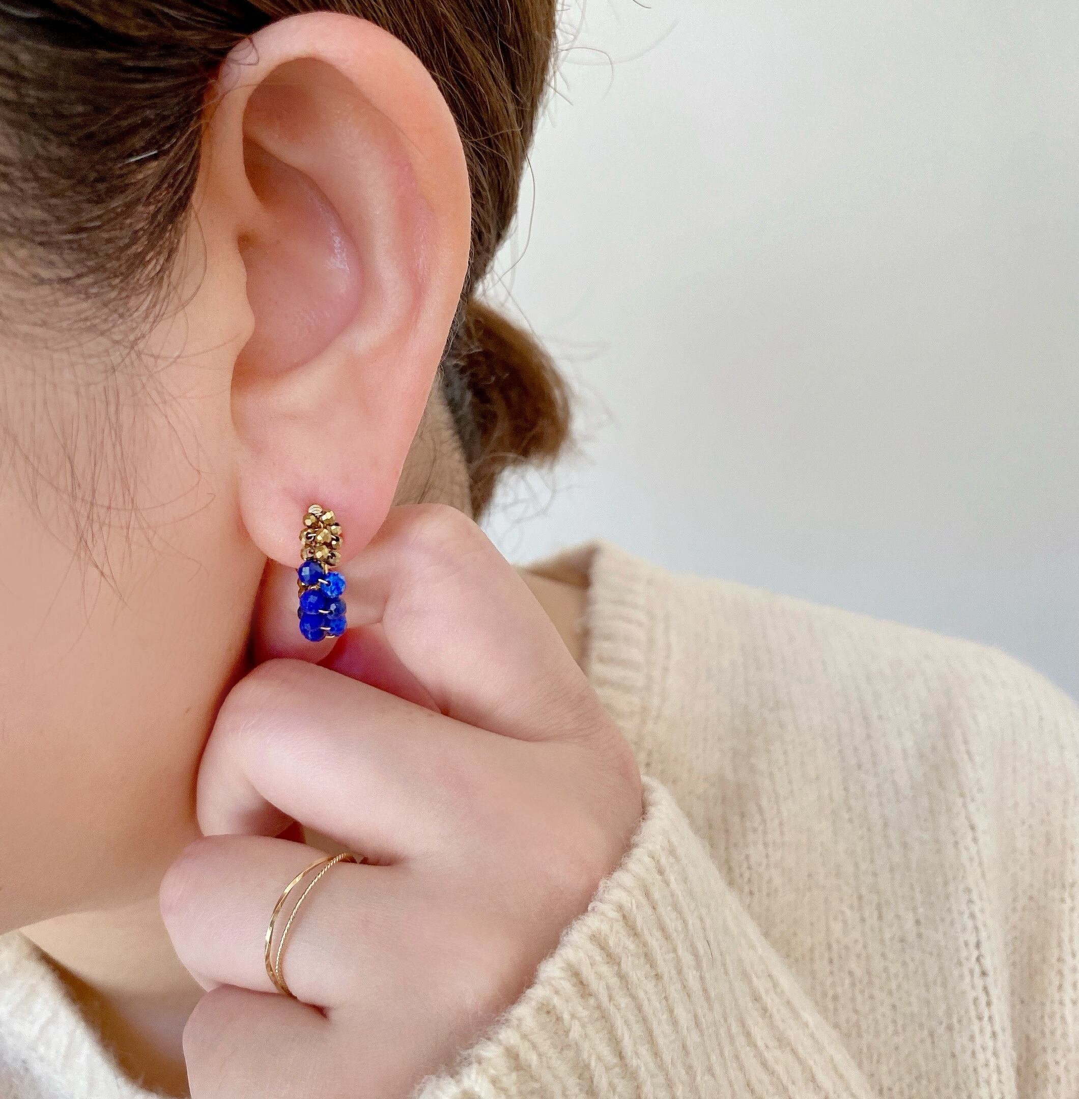 12月の誕生石、ラピスラズリをシンプルなフープイヤリング(ピアス)へ仕立てました。