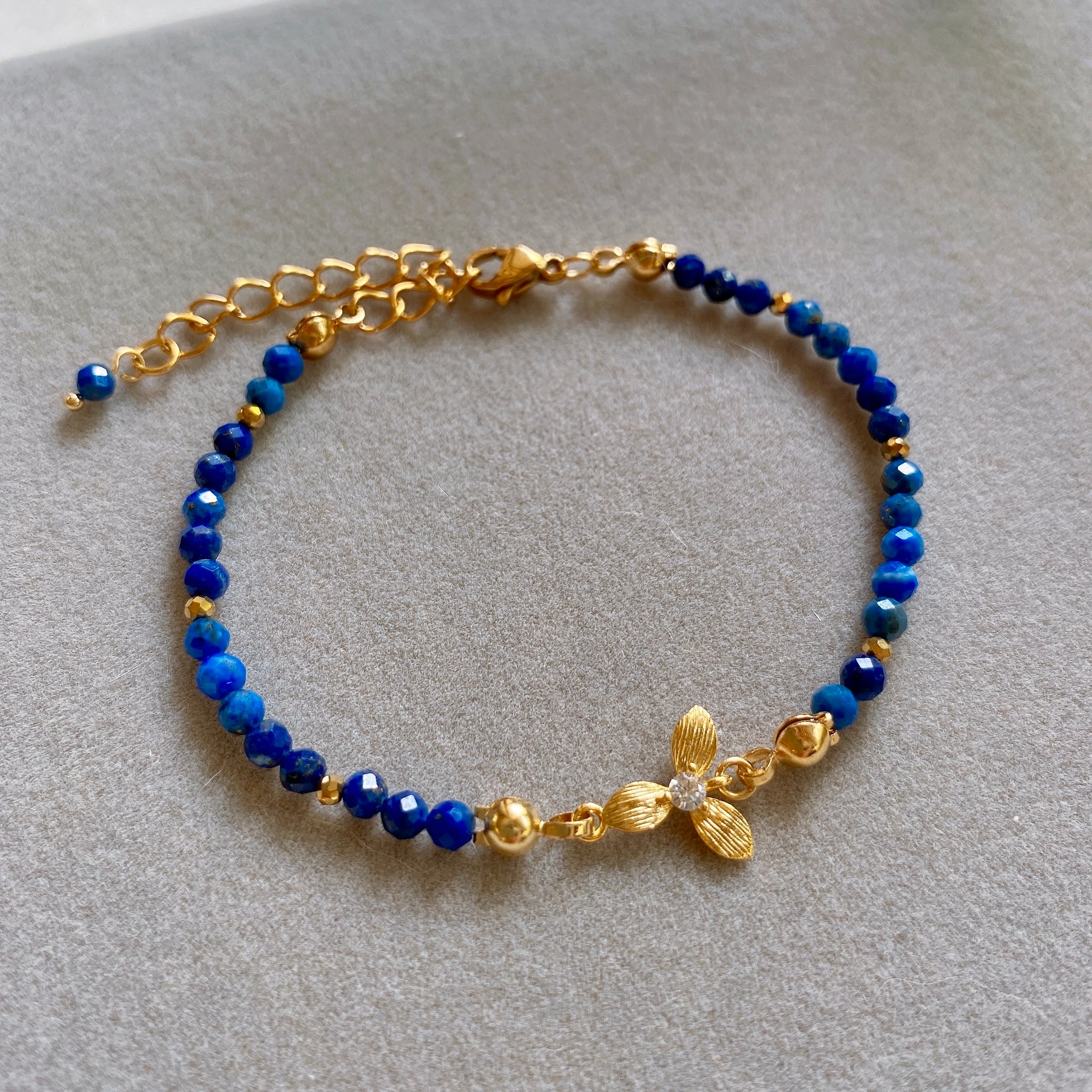 深いロイヤルブルーが魅力のラピスラズリを使ったブレスレットです。