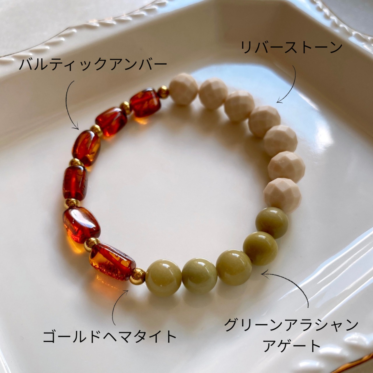 素材*バルティックアンバー/リバーストーン/アラシャンアゲート/ヘマタイト/オペロンゴム