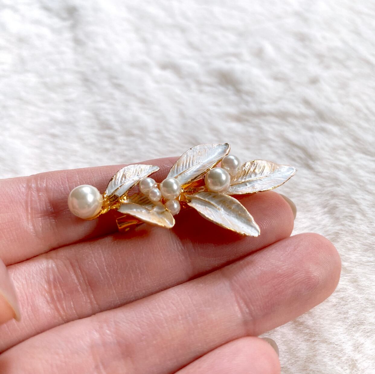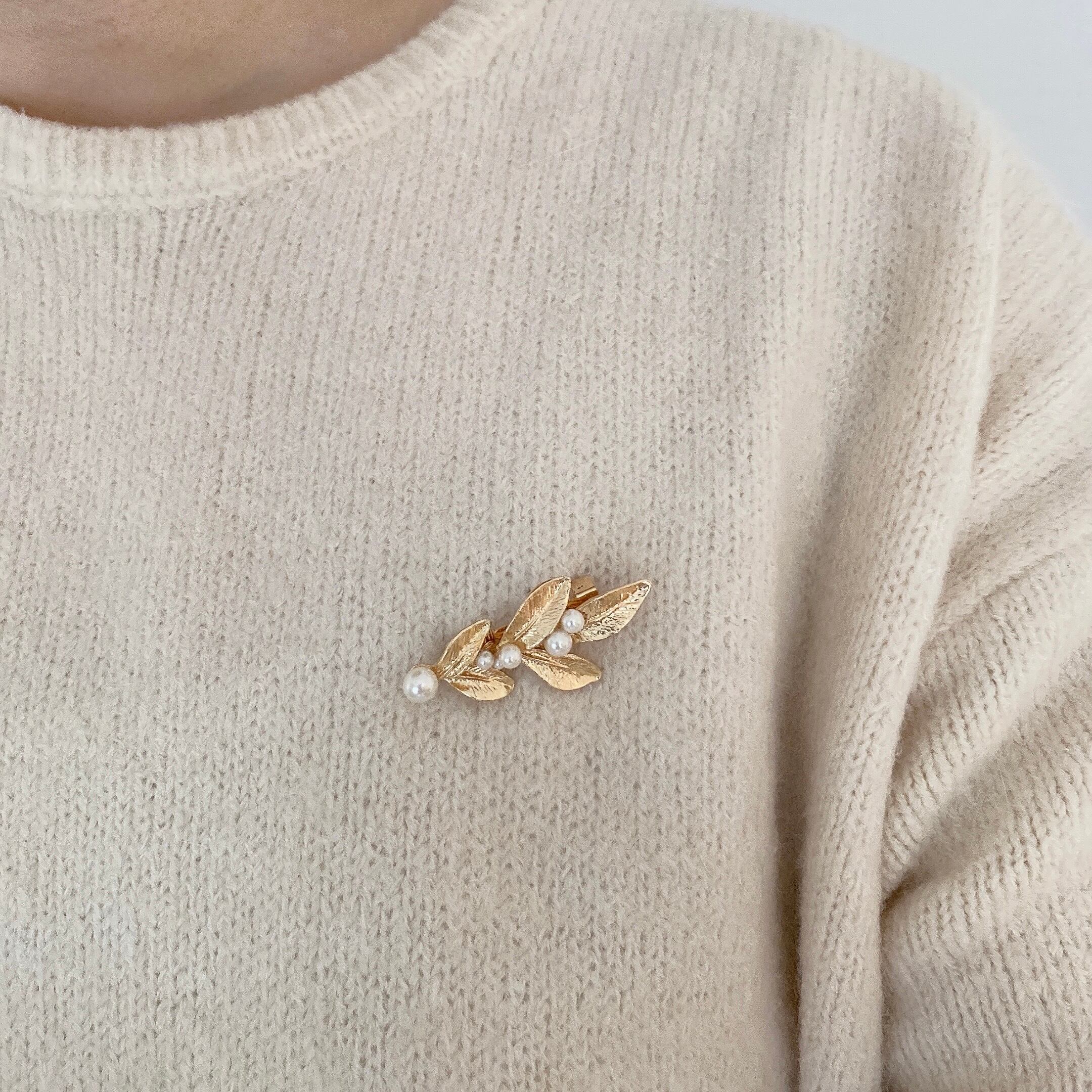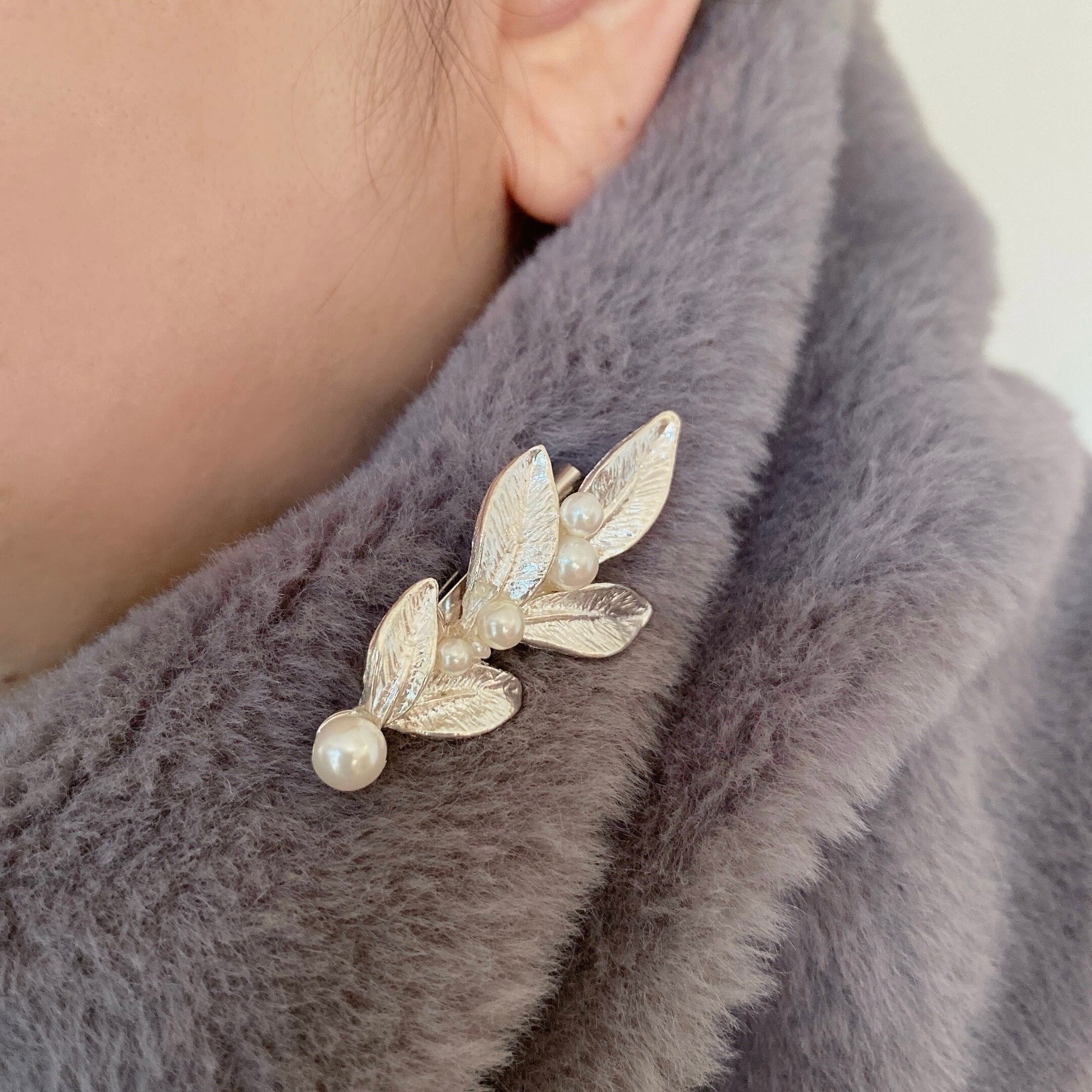シンプルなストールやスヌードに付けたり、無地のトップスに合わせたりと万能なブローチ。