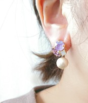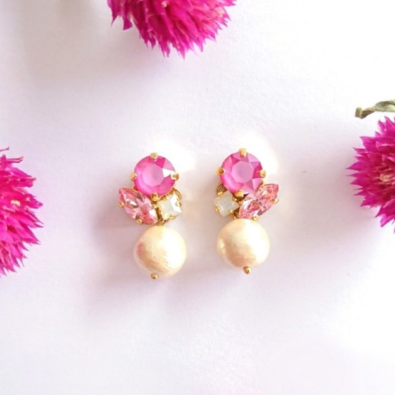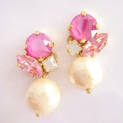 華やかなピンク系のスワロフスキーを集めたイヤリング/ピアスです。