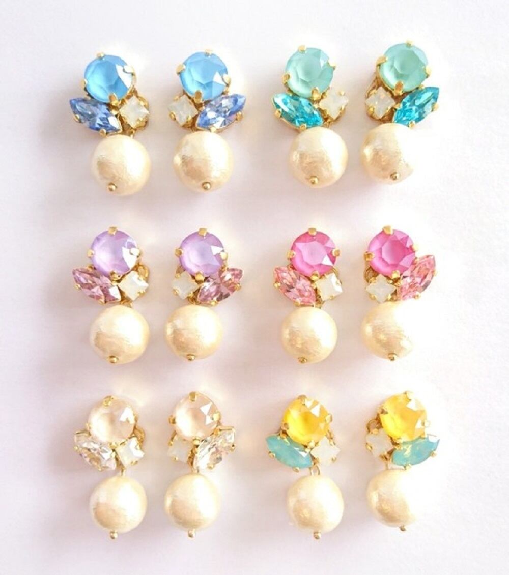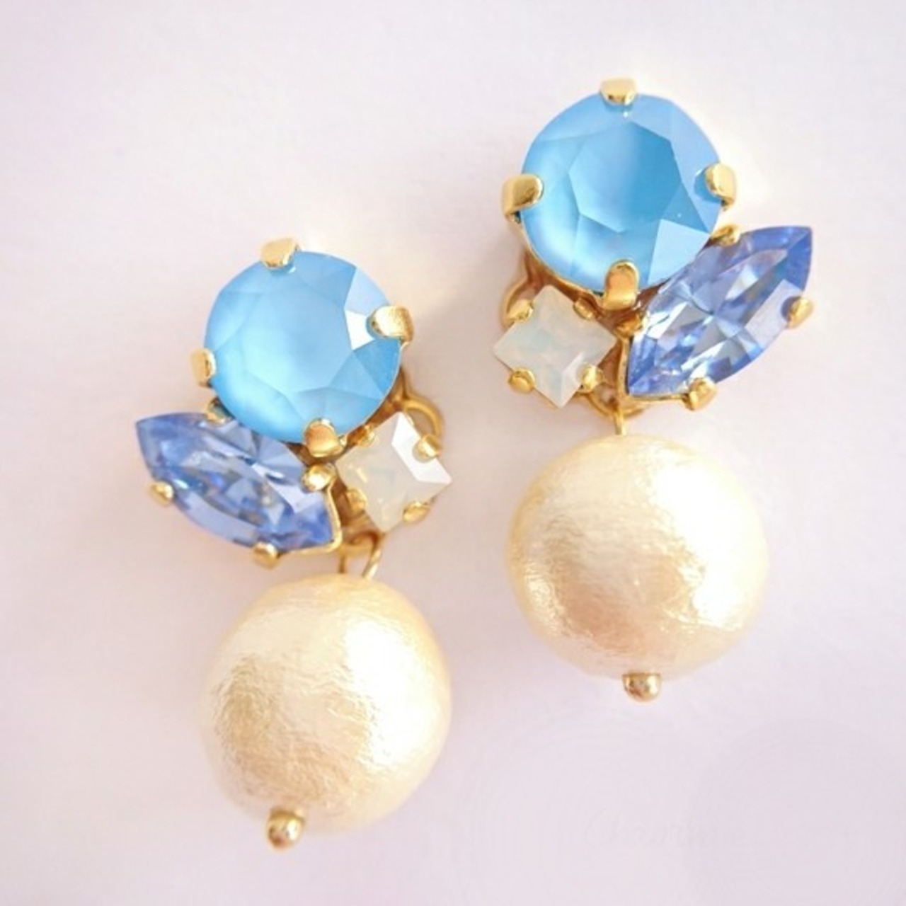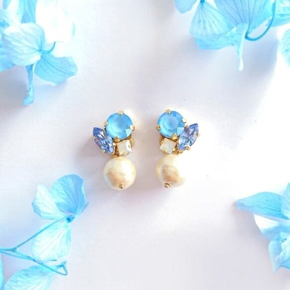 清涼感のあるブルー系のスワロフスキーを集めたイヤリング/ピアスです。