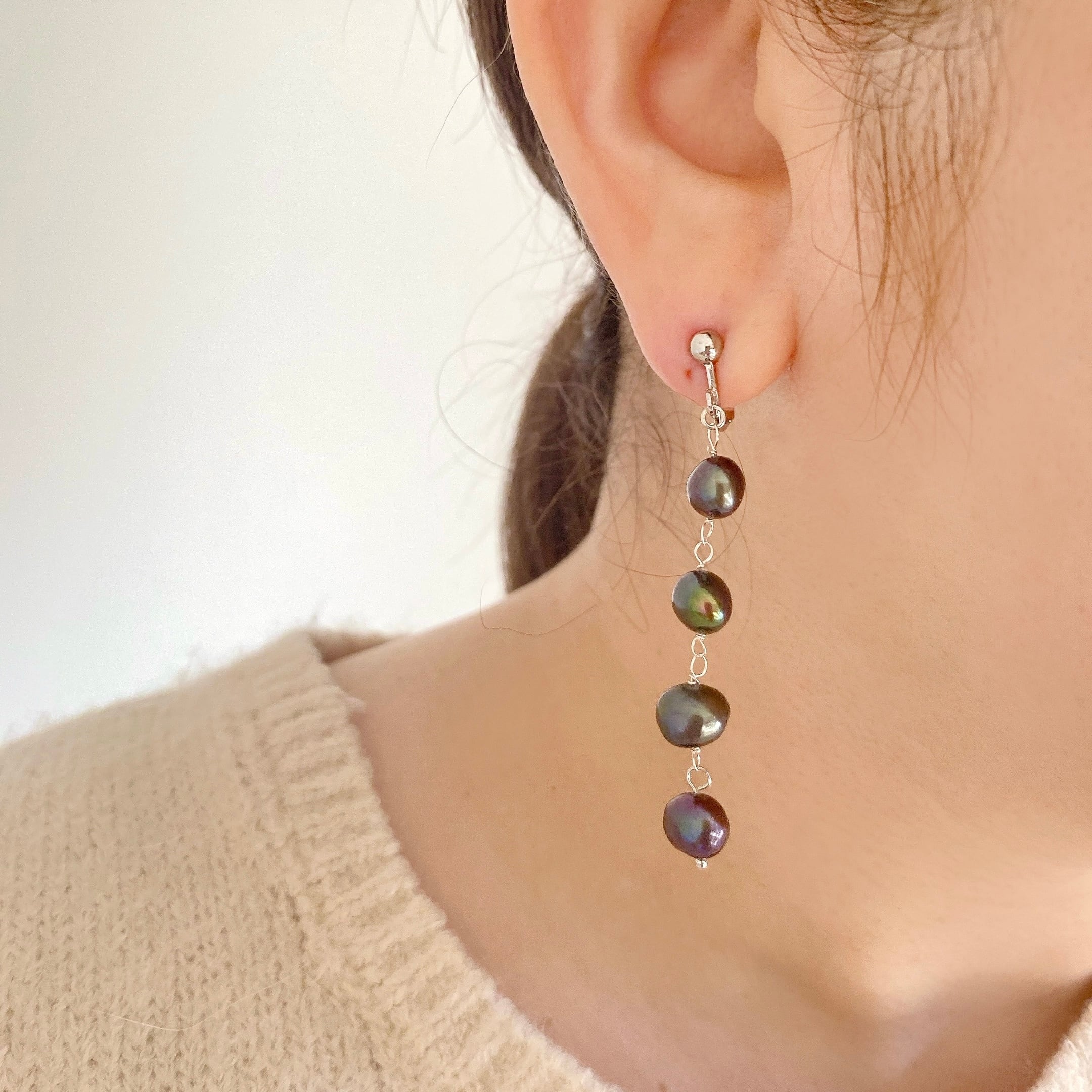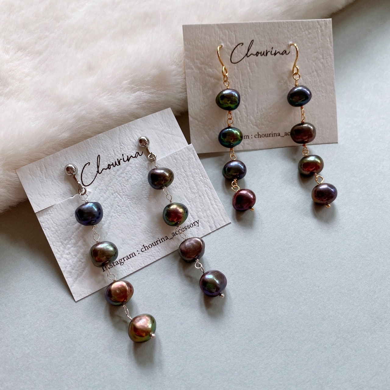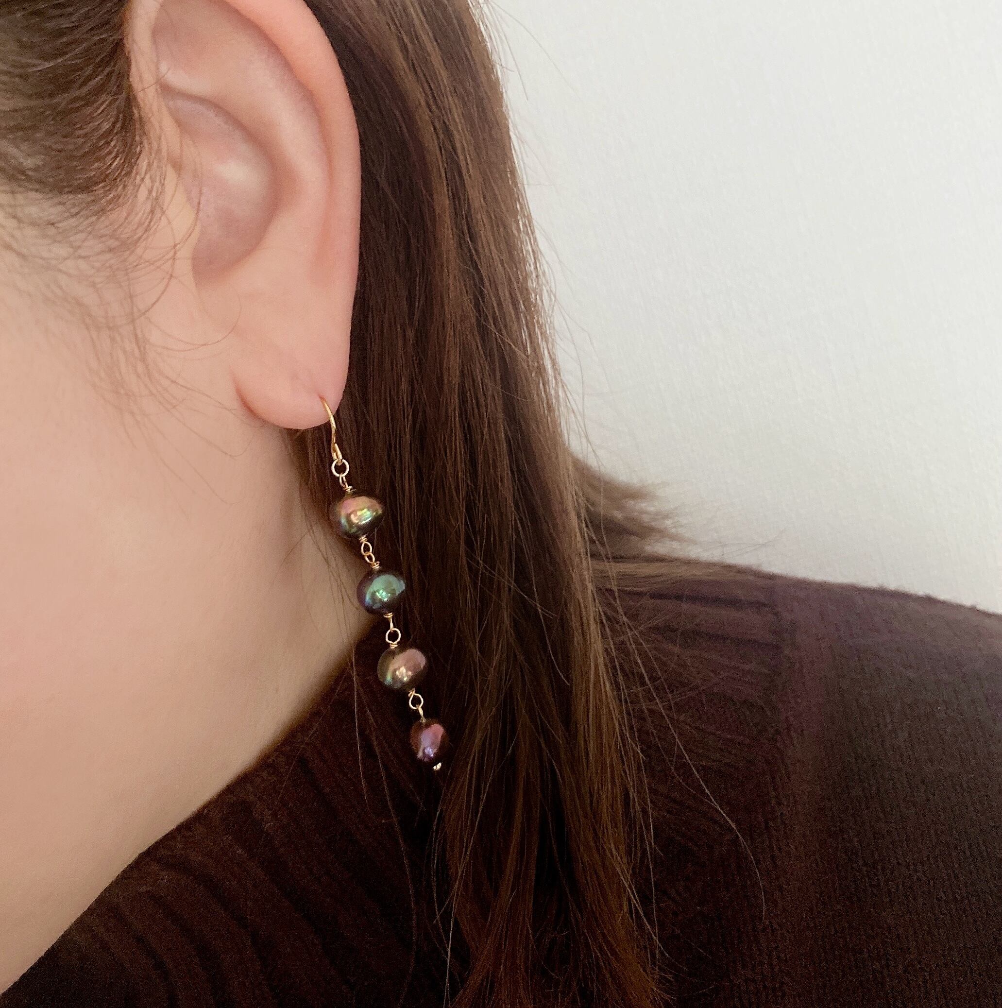 高品質のバロックパールを贅沢に使用した耳飾りです。