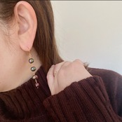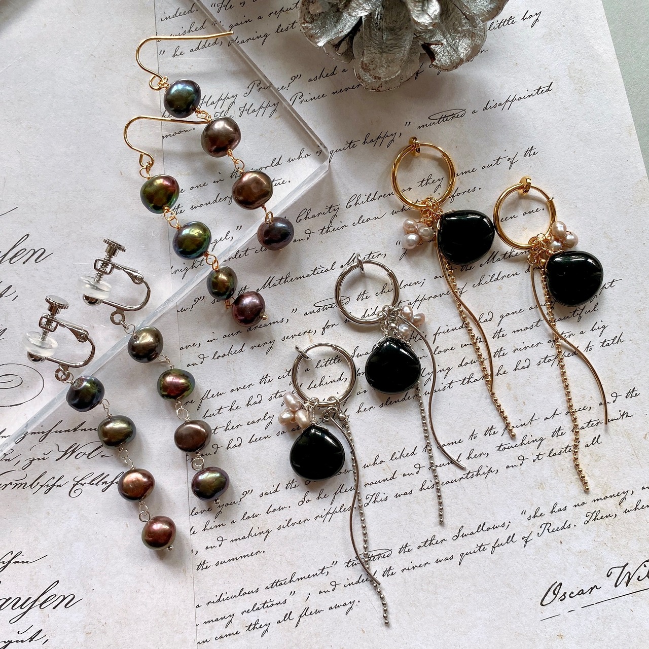 ステーションピアス/結婚式/お呼ばれ/天然石/14kgf/マーブル/淡水パール/パール/ゴールド/プレゼント/誕生日プレゼント/誕生日石/まる/花/チェコビーズ/アースカラー/モノトーン/差し色/クリスマス/パール/雪