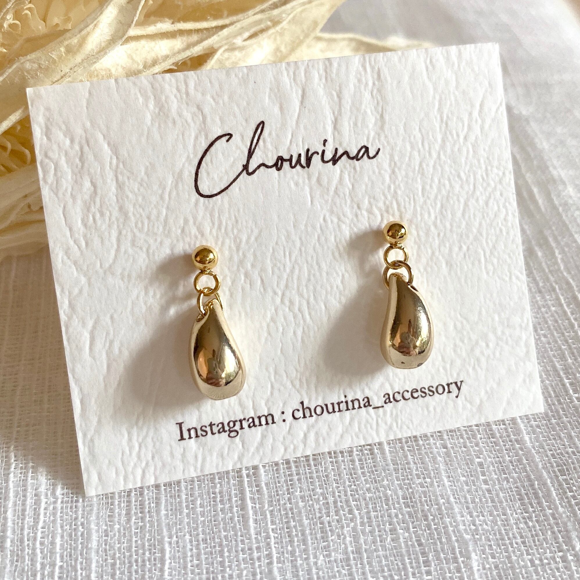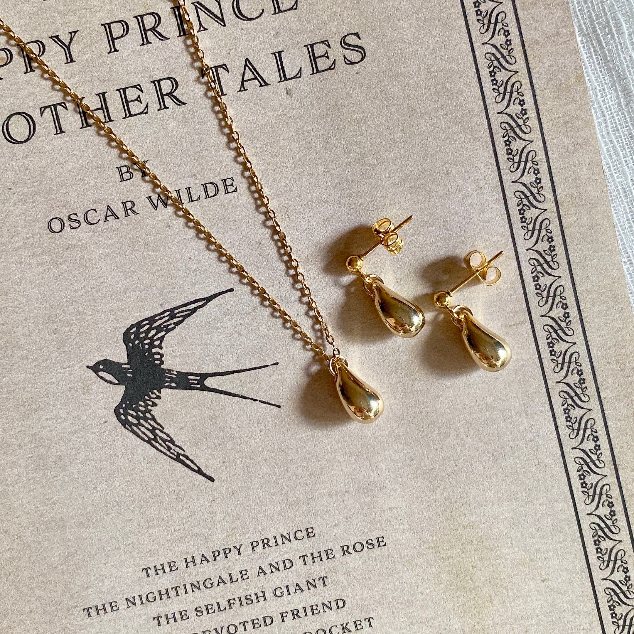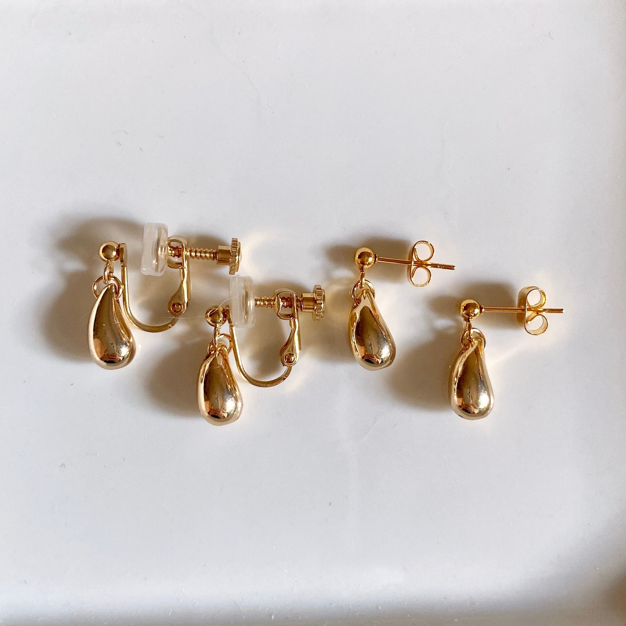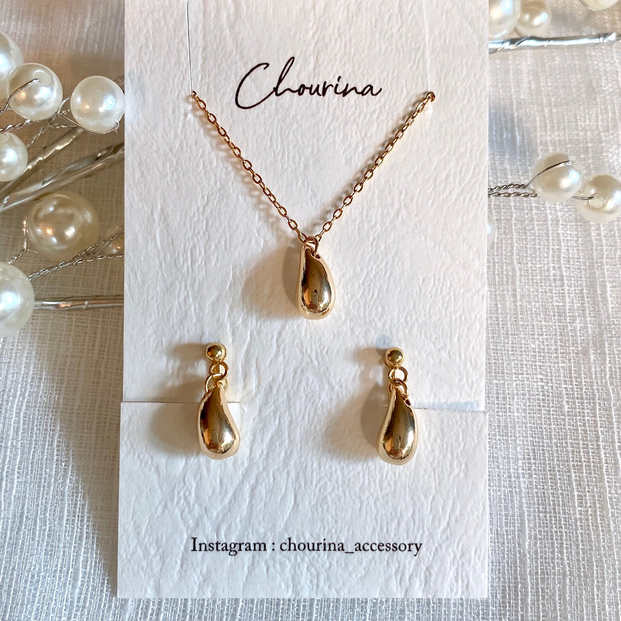 繊細なゴールドドロップの耳飾りとネックレスのセットです。