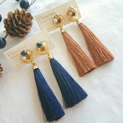 ボリューム感のあるタッセルとビジューを合わせたイヤリング&ピアスです。