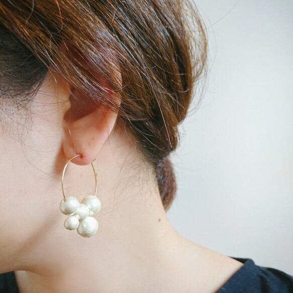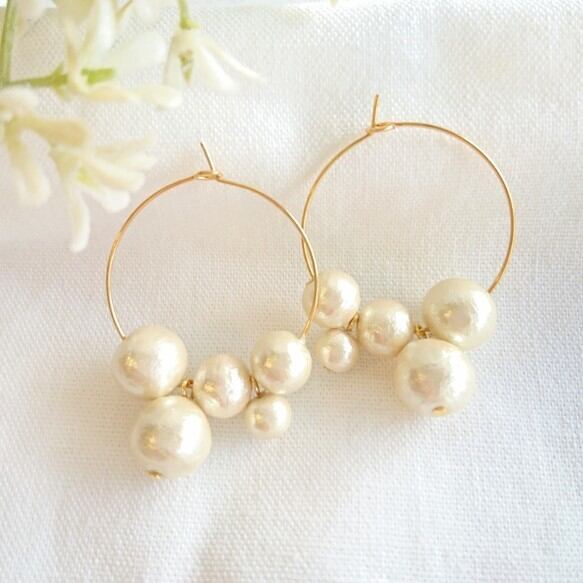 コットンパールフープピアス/ノンホールピアス/ハンドメイド