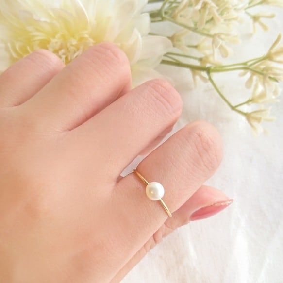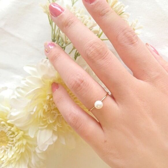 14kgf素材のリングに淡水パールを合わせたシンプルな一粒デザインです。