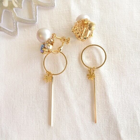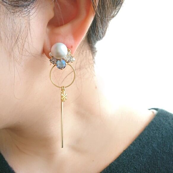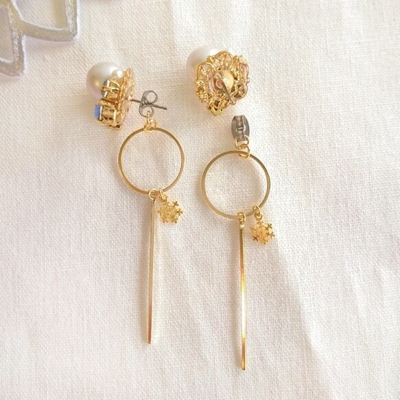 二通りのデザインが楽しめるので、お得感のあるイヤリング/ピアスです。