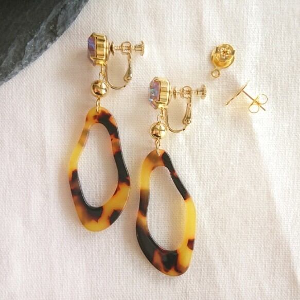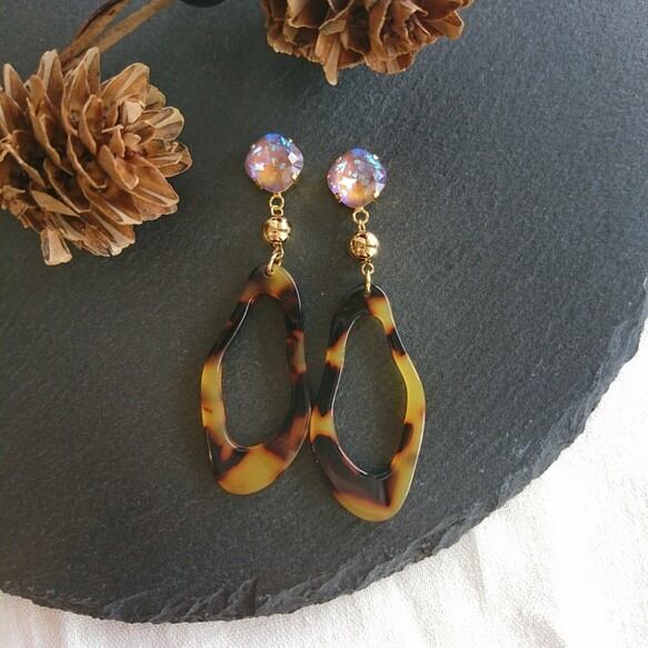 一粒のスワロフスキーとべっ甲を合わせた大人っぽいイヤリング/ピアスです。