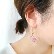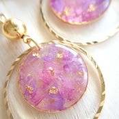 本物のお花、スターチスのドライフラワーを閉じ込めたイヤリング/ピアスです。