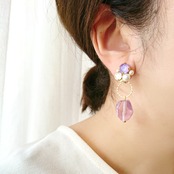 春の花を感じさせる淡いパープルのビジューイヤリング/ピアスです。