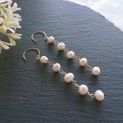 コロンとした淡水パールを一粒一粒丁寧に繋ぎ合わせたロングタイプのピアス/イヤリングです。