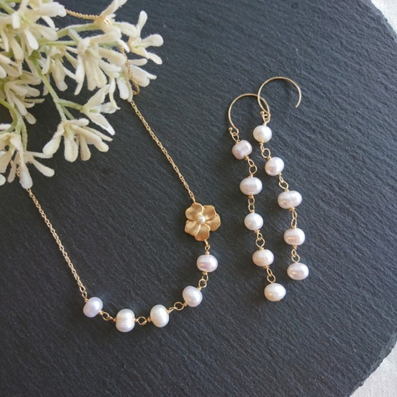 同じパールでデザインしたネックレスとお揃いで身につけて頂いても素敵です☆
