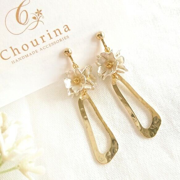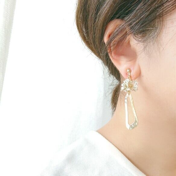 白桜の花束イヤリング/ピアス/ハンドメイド