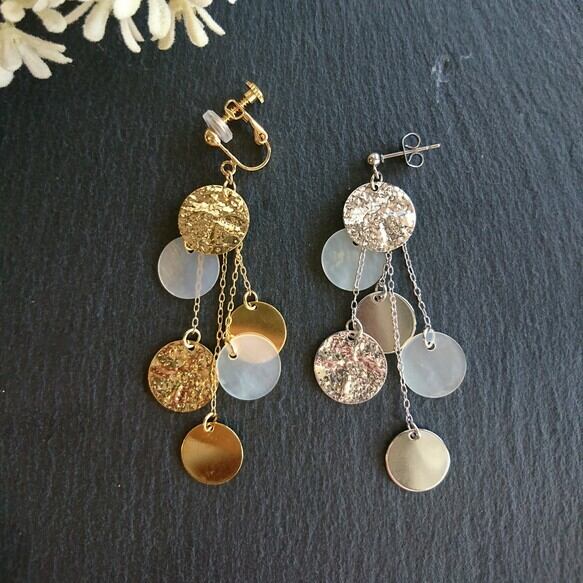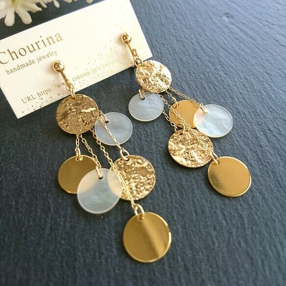 シェル&バブル(ゴールド) イヤリング/ピアス/ハンドメイド
