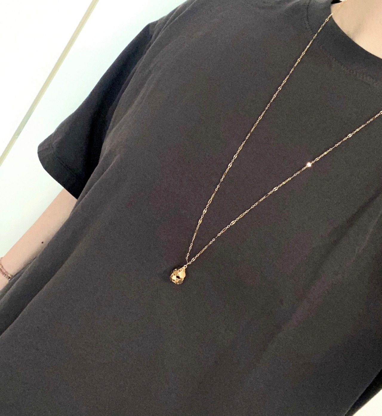 チェーンは80センチとたっぷり長さをとっているので、冬はタートルネックのセーターとも合わせて頂くのもステキです。