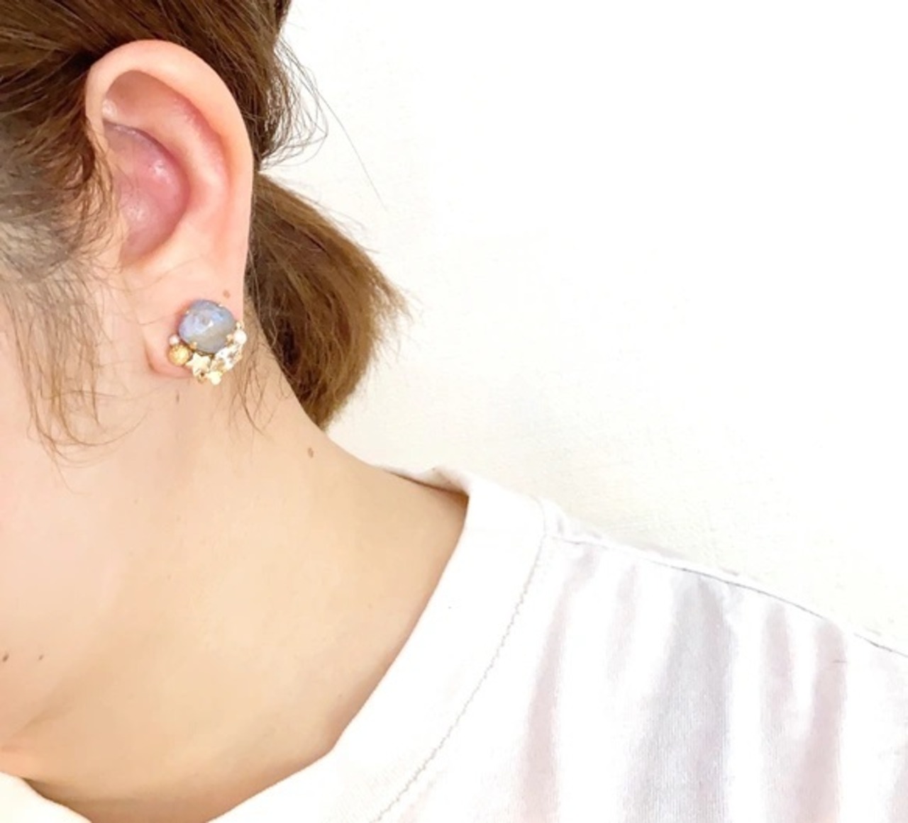 グレー/星/結婚式/お呼ばれ/天然石/14kgf/マーブル/淡水パール/パール/ゴールド/プレゼント/誕生日プレゼント/誕生日石/まる/花/チェコビーズ/クリアビーズ/透明感/差し色/ブルー/パール/お呼ばれ/月