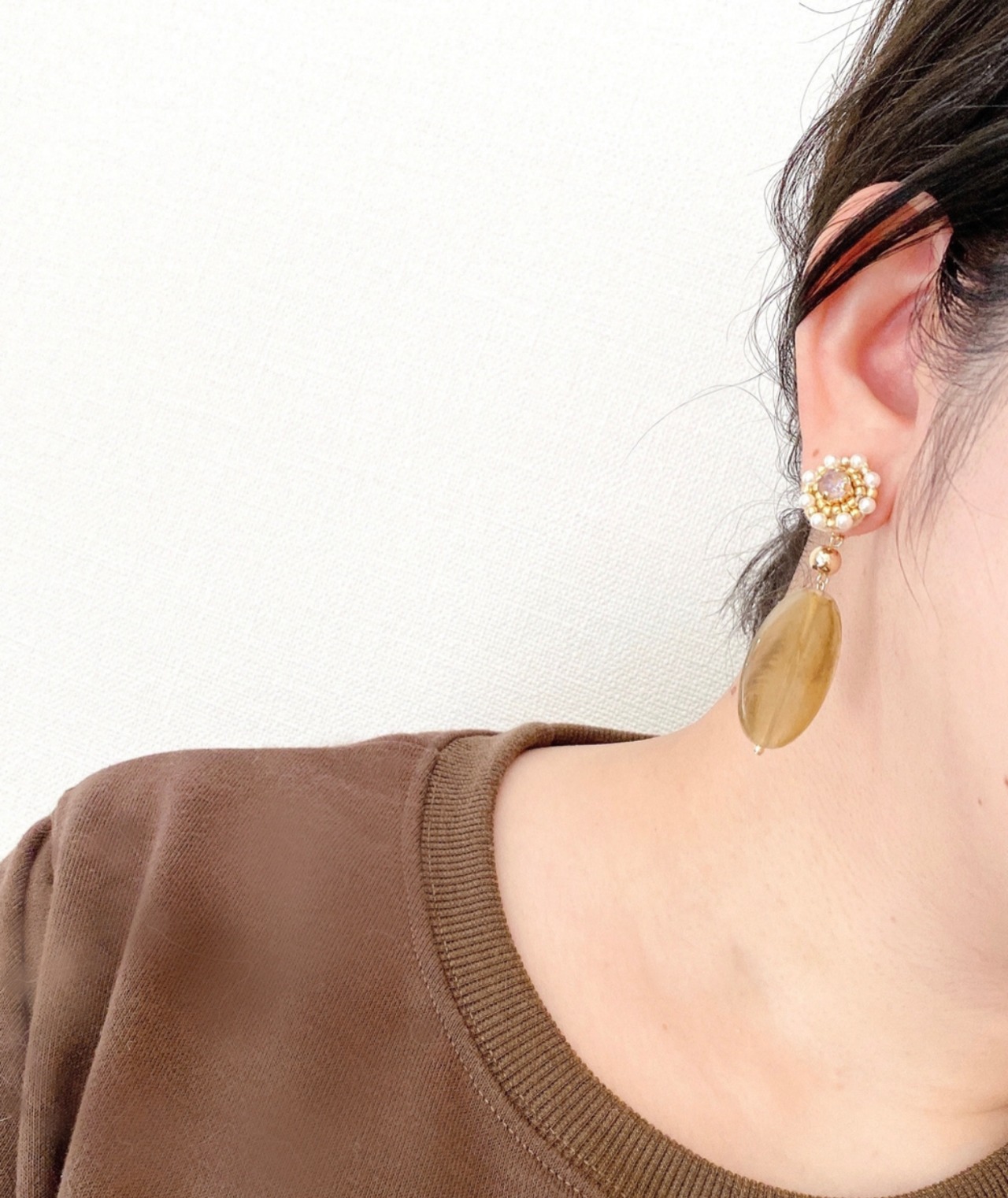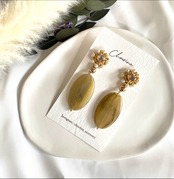 秋/冬/結婚式/お呼ばれ/天然石/14kgf/秋冬/スワロ/刺繍/シック/プレゼント/誕生日プレゼント/誕生日石/まる/ビーズ刺繍/チェコビーズ/クリアビーズ/透明感/ブラウン/オリエンタル/パール/イエベ/カーキ/オリーブ