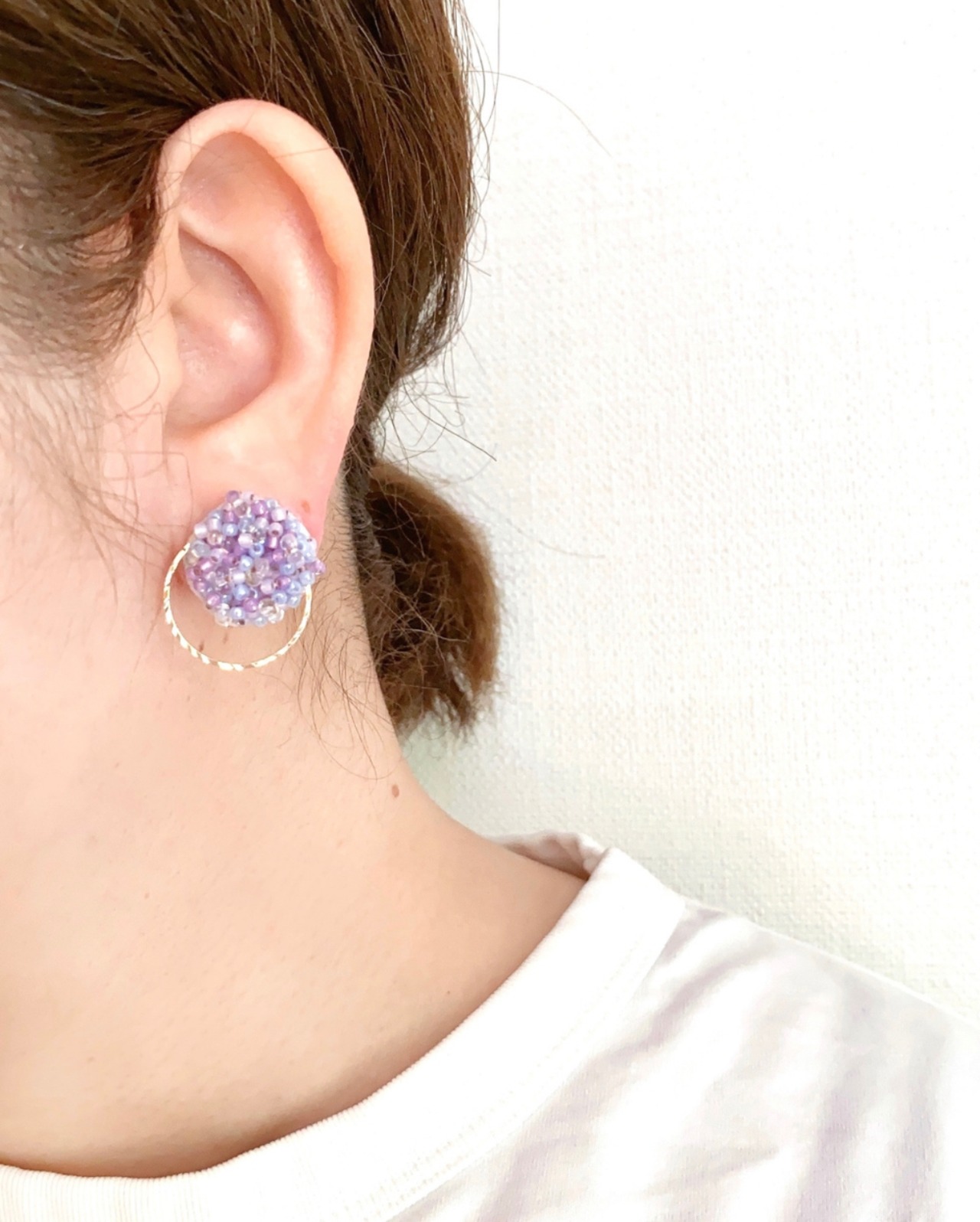 アクセントにクリアのチェコビーズを加えて、雨露に濡れたようなニュアンスに。