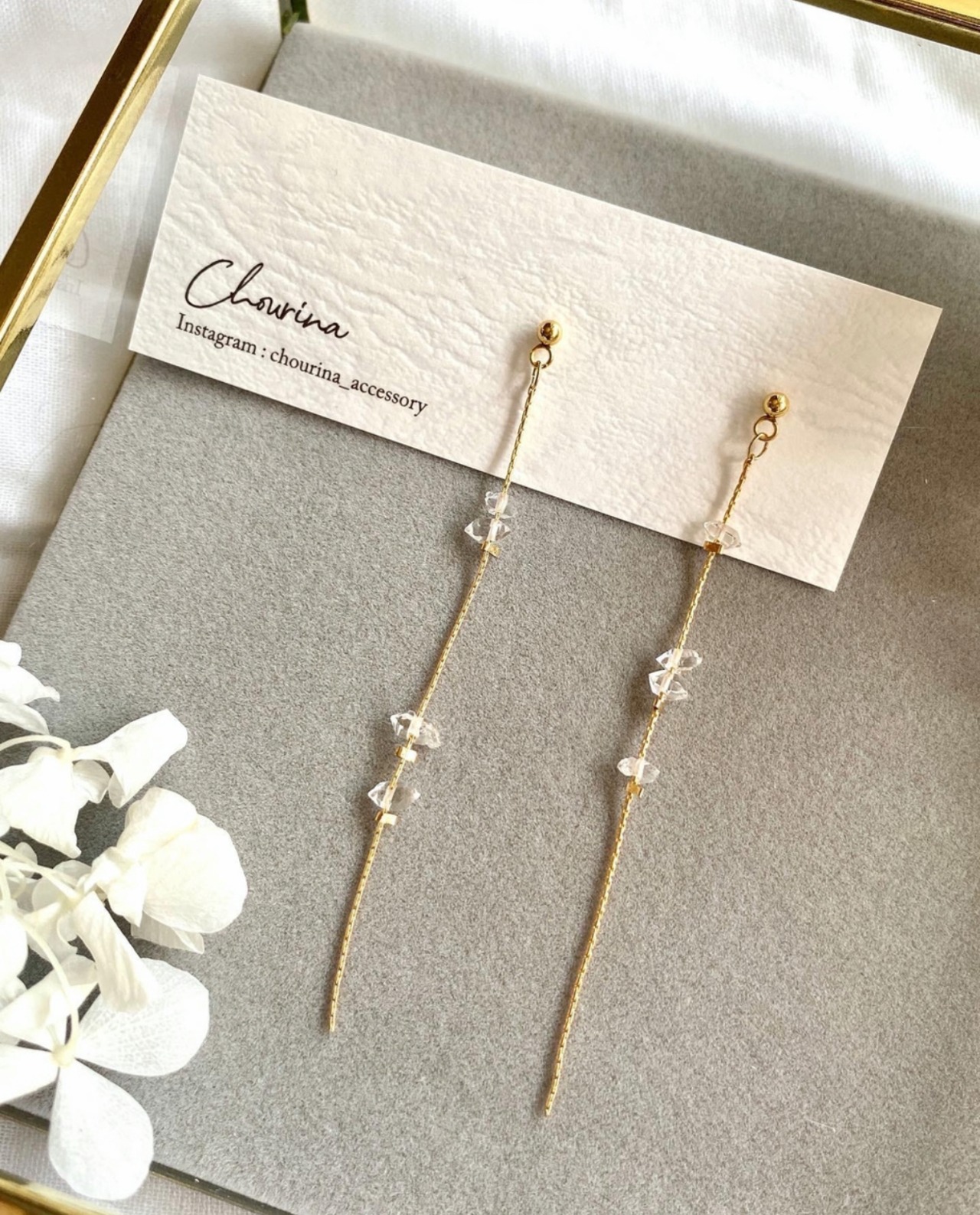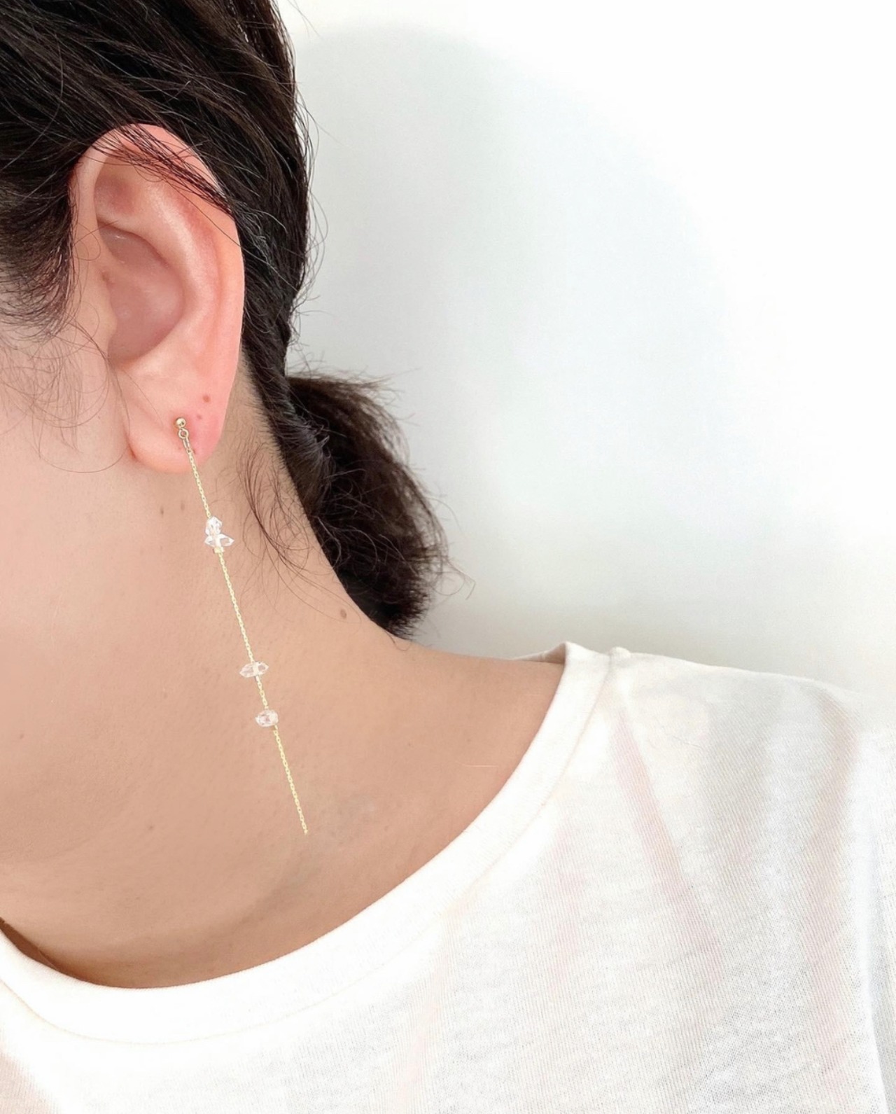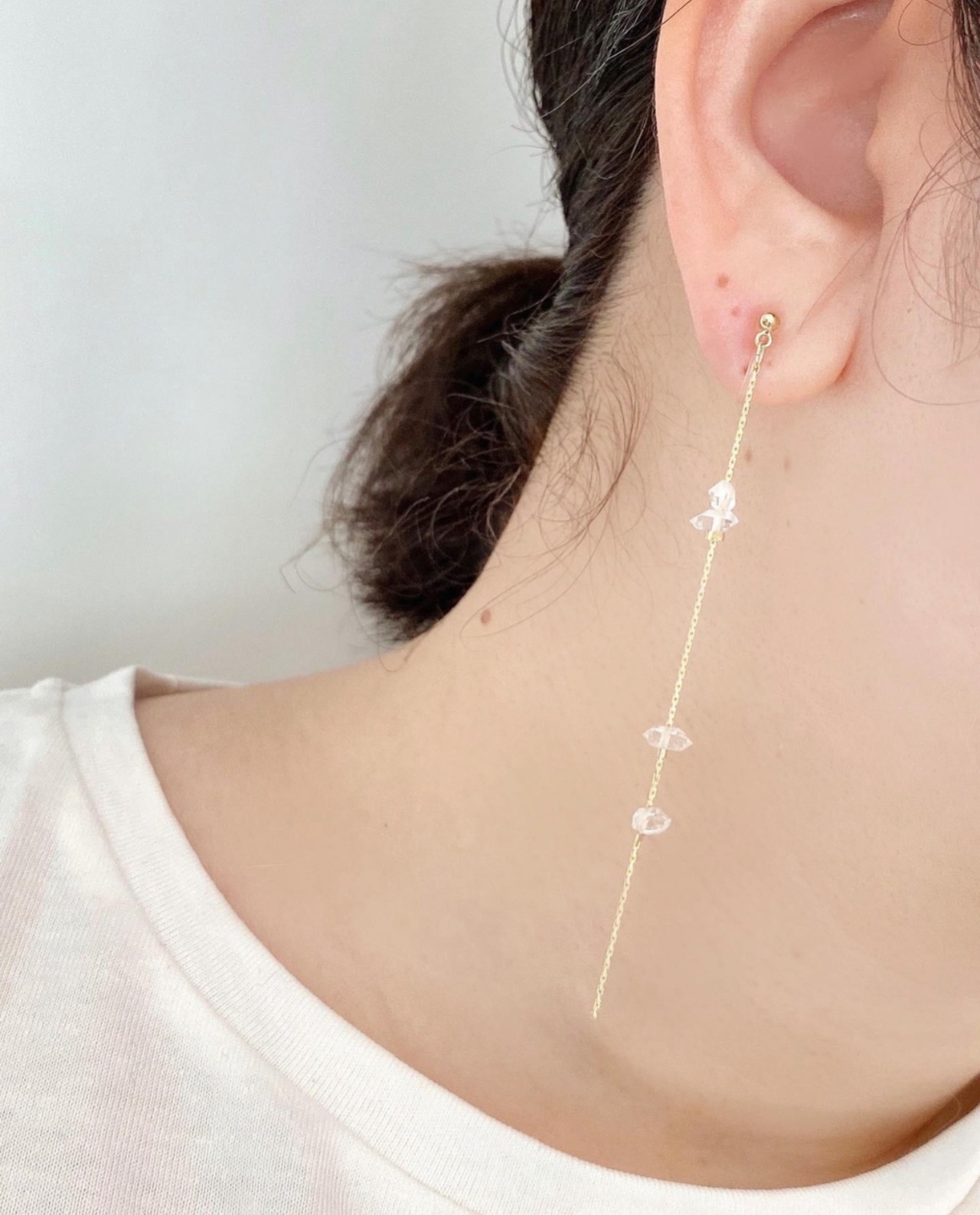 春/花/結婚式/お呼ばれ/天然石/14kgf/ハーキマーダイヤモンド/ダイヤモンド/チェーンピアス/華奢/プレゼント/誕生日プレゼント/誕生日石/4月
