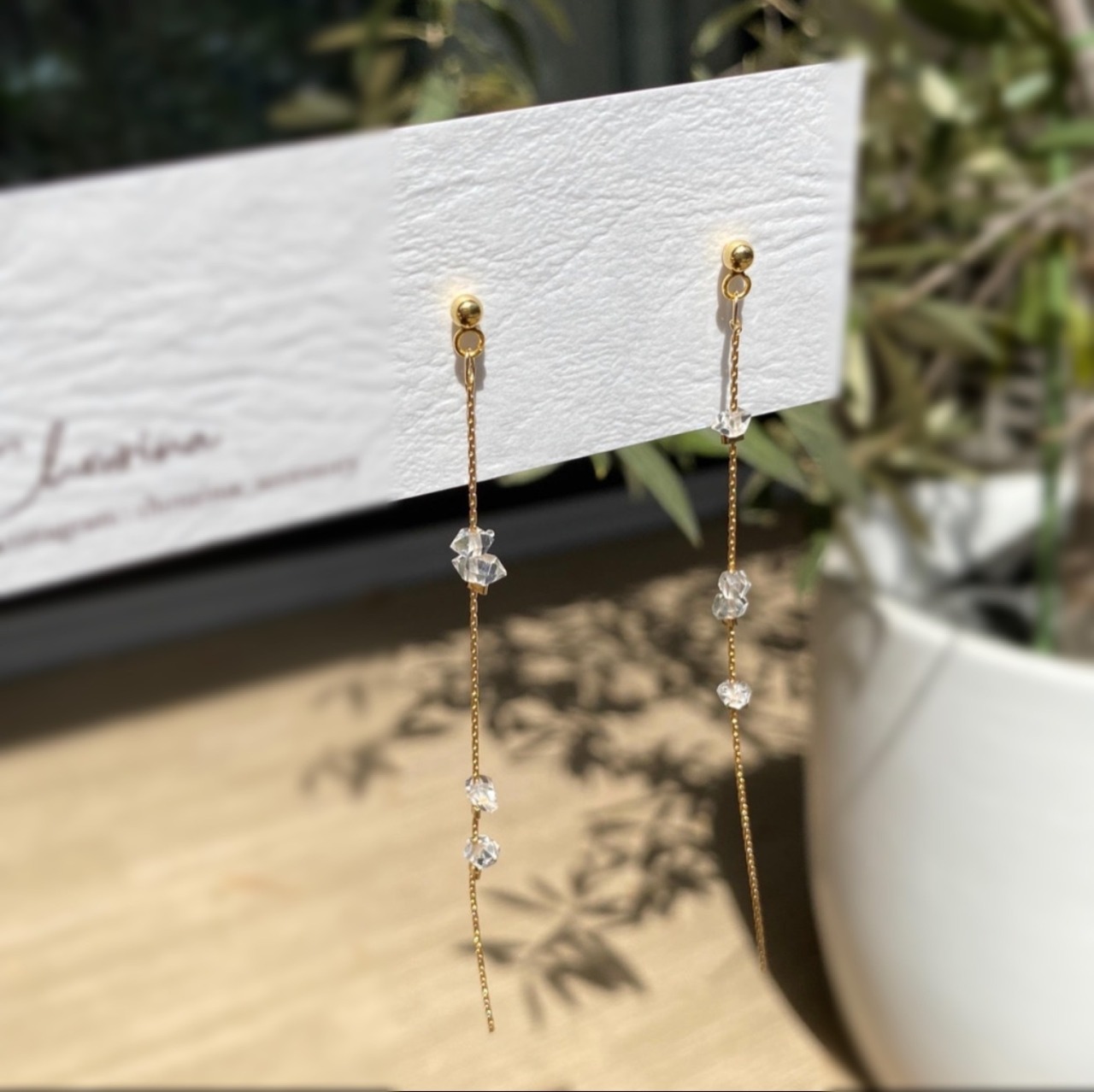 光に当たるとハーキマーダイヤモンド繊細な煌めきが際立ち、とても綺麗です。
