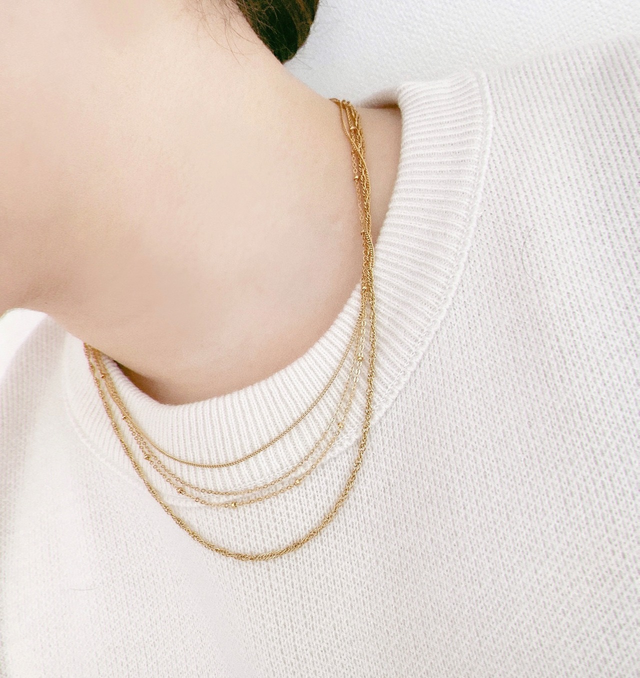 アレルギー対応のサージカルステンレスを4連ネックレスに仕立てました。